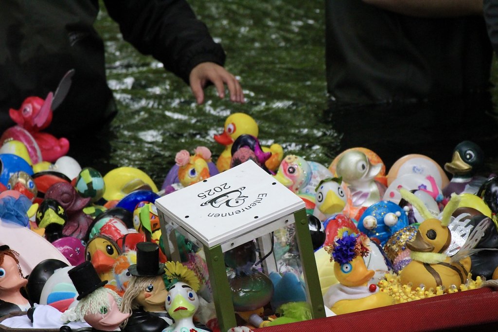 Entenrennen 2025 in Bad Langensalza mit dem Blick auf die Enten des vergangenen Jahres (Foto: Eva Maria Wiegand)