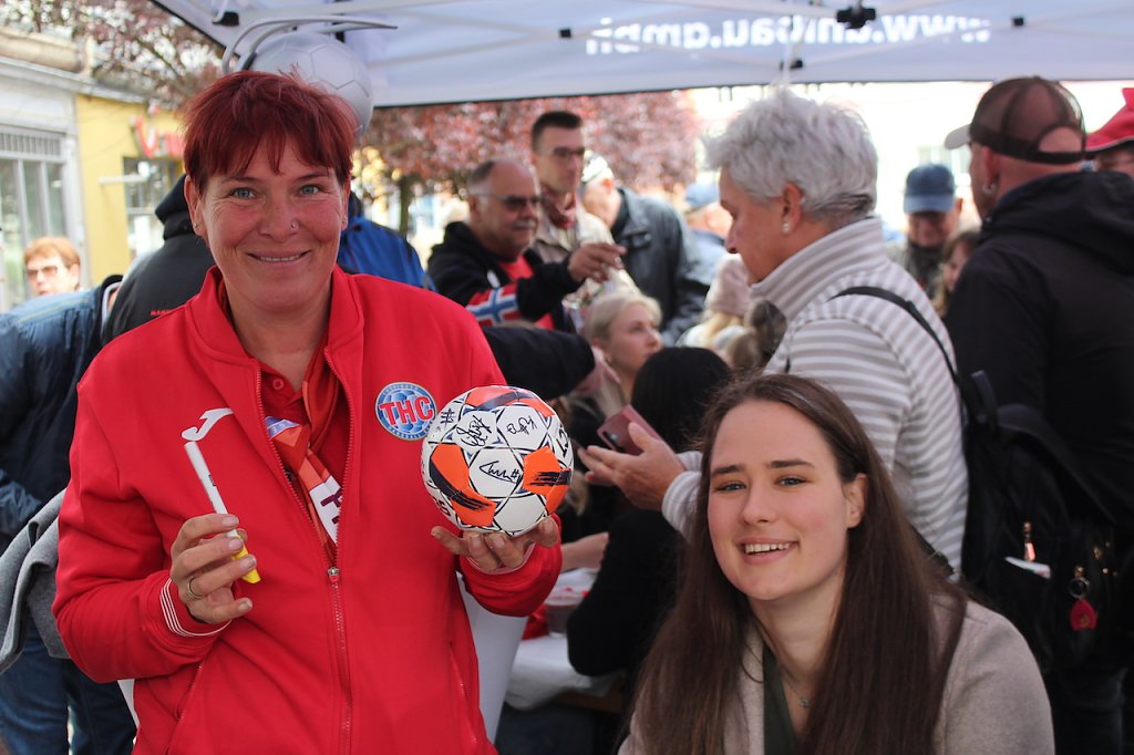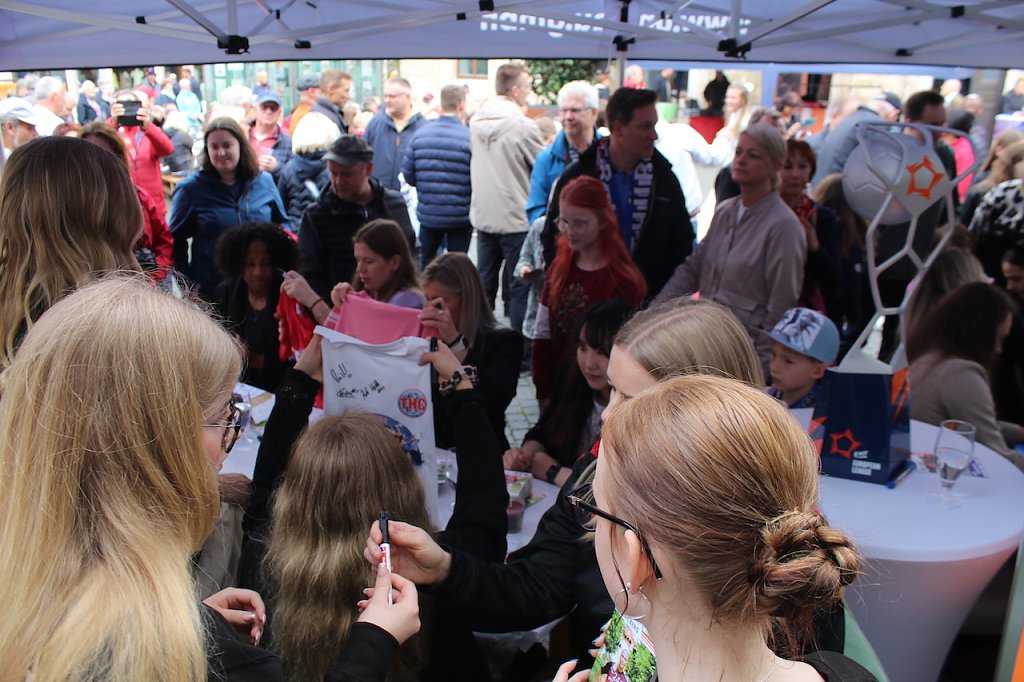 Ein wirklich großer Bahnhof auf dem Neumarkt in Bad Langensalza fand heute Nachmittag für die Handballerinnen des Thüringer HC statt, die vor wenigen Wochen sensationell den EHF-Cup gewannen. Der Bürgermeister der Stadt hatte geladen, um den Damen einen Eintrag ins Goldene Buch der Stadt zu ermöglichen…