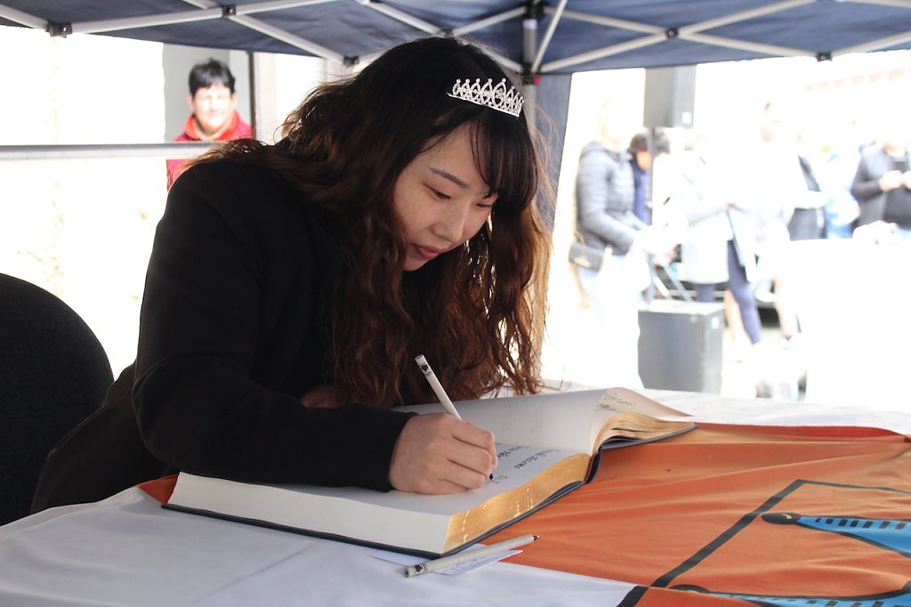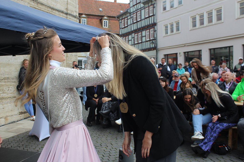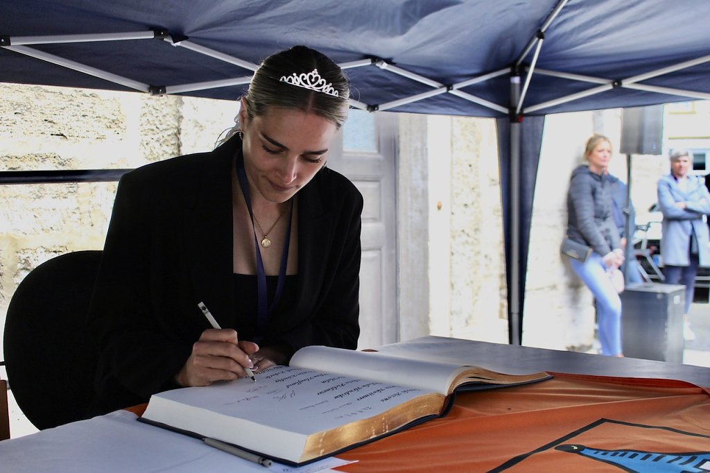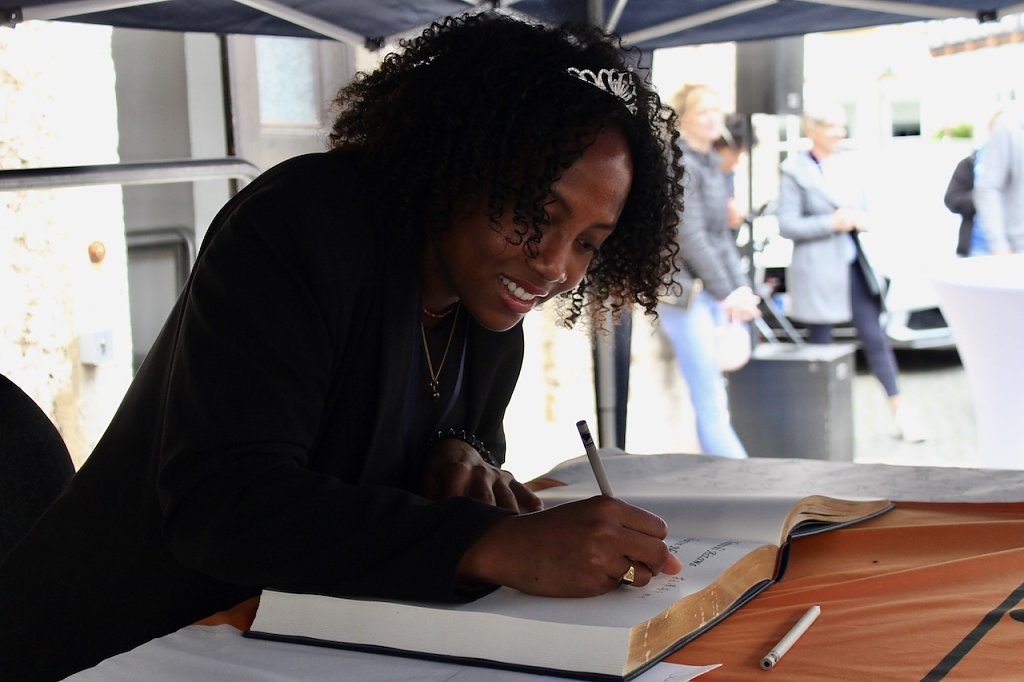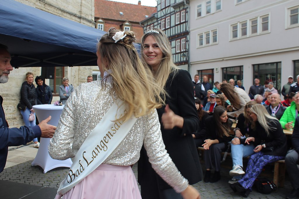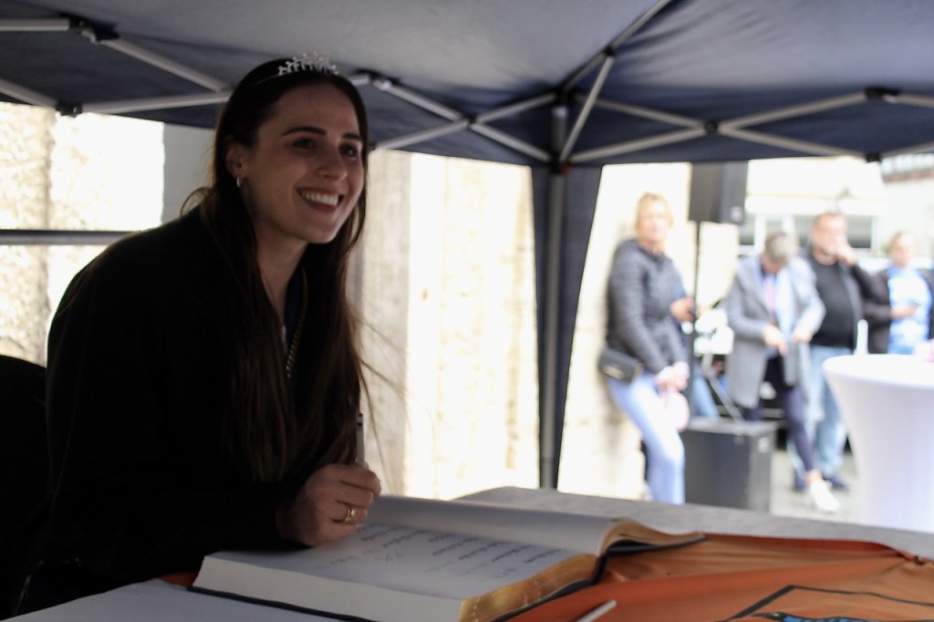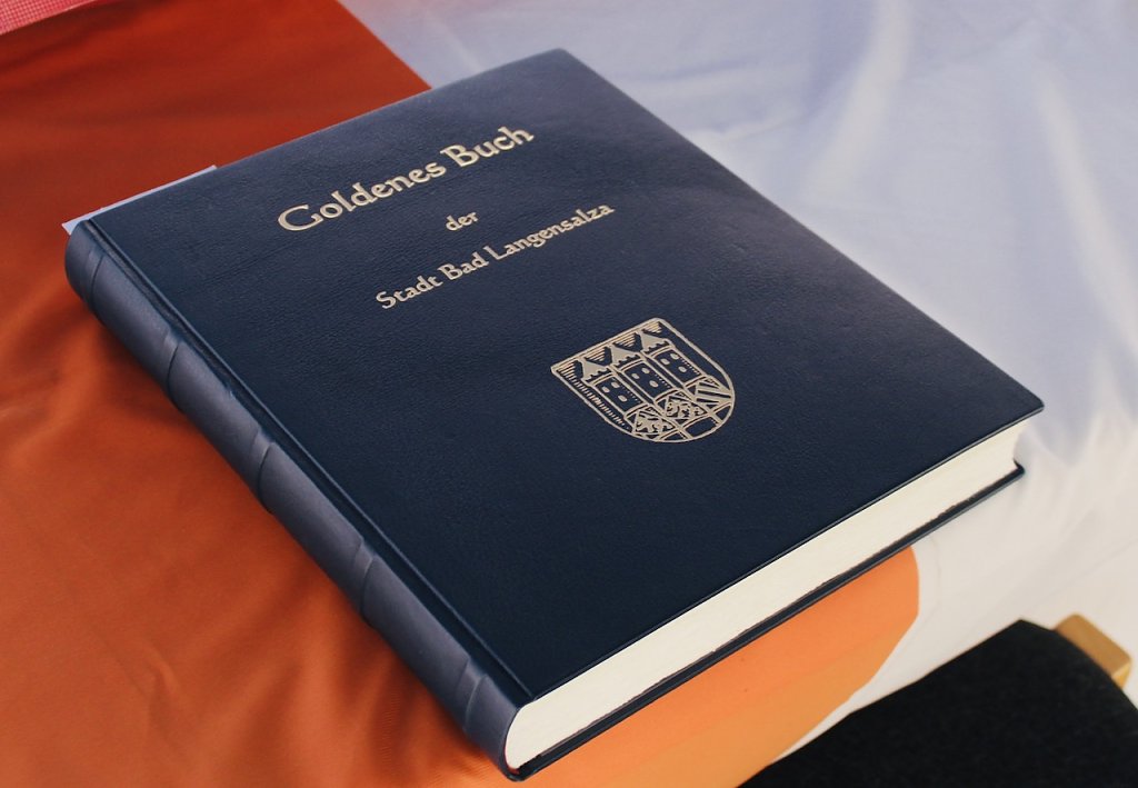 Bad Langensalzas Bürgermeister, Matthias Reinz, sprach voller Stolz und Dankbarkeit für die Verwaltung und die Bürger der Stadt, denen die Ehre zuteil wurde, Herberge eines europäischen Sportchampions zu sein. Um den ehrenden Akt für alle Fans zugänglich zu machen fände die Eintragung bis Goldene Buch im Freien an der Rathausmauer statt und nicht im Ratssaal. Im Namen der gesamten Stadtverwaltung schenkte er den Europacup-Siegerinnen einen Baum, der im Stadtgebiet eingepflanzt nachhaltig an diesen historischen Erfolg erinnern solle. Auch die Rosenkönigin Maxima empfand es als große Ehre dabei sein zu dürfen und den Handballerinnen quasi als Glücksfee auch im nächsten Jahr zu dienen, für das sie maximale Erfolge wünschte.