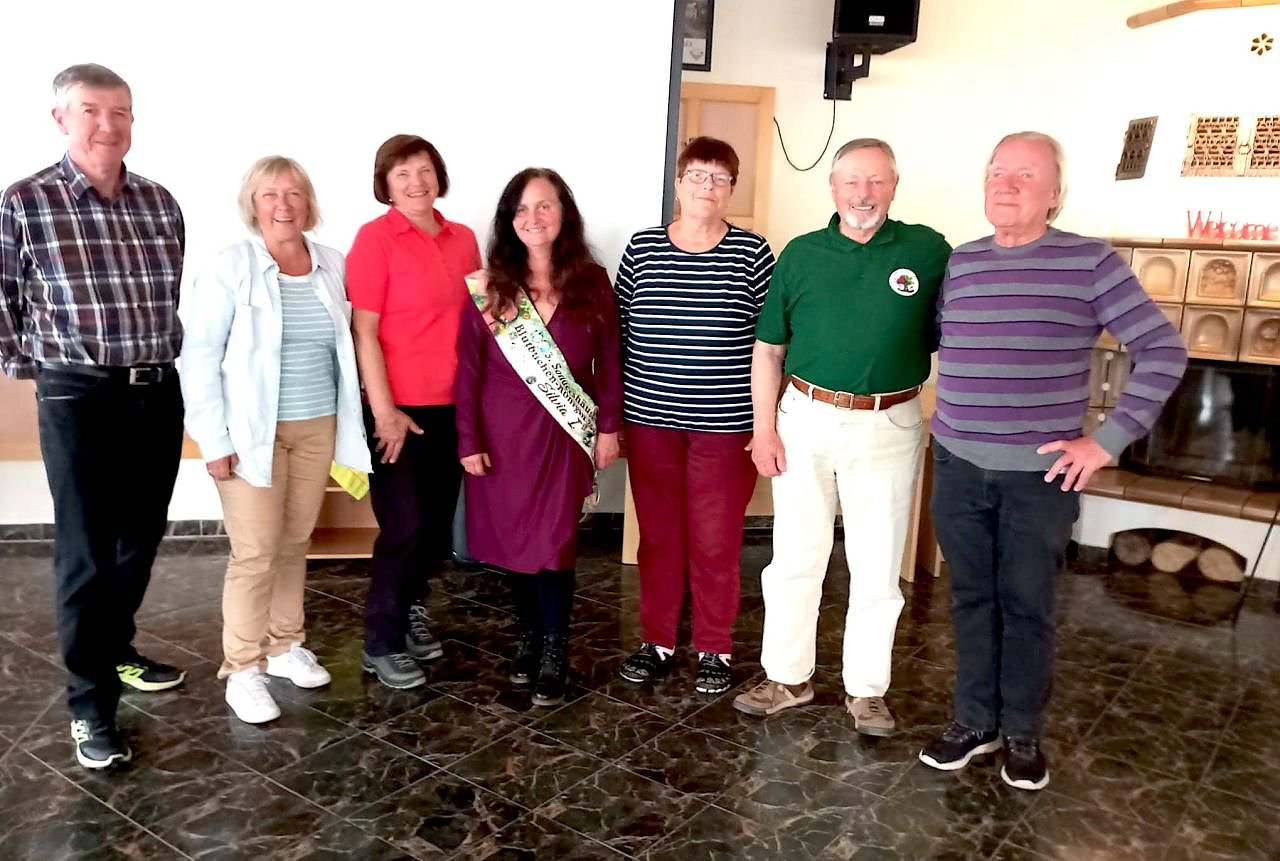 Gleiche Mutationen gab es auch in der Schweiz und Frankreich. Aber die Mehrheit, etwa 99 Prozent der Reißer wurden von Sondershausen aus in alle Welt verschickt. Für Herrn Hubert war dies sein letzter Vortrag. Er geht in Kürze in den verdienten Ruhestand und will zusammen mit seiner Frau die Gegenden der Erde besuchen, wo sie bisher noch nicht waren. Wir wünschen ihnen alles Gute. Dieser Vortrag wurde auch von der amtierenden Sondershäuser Blutbuchenkönigin, Silvia I., besucht. Sie gewährte uns Wanderern ein gemeinsames Foto. Vielen Dank auch dafür.