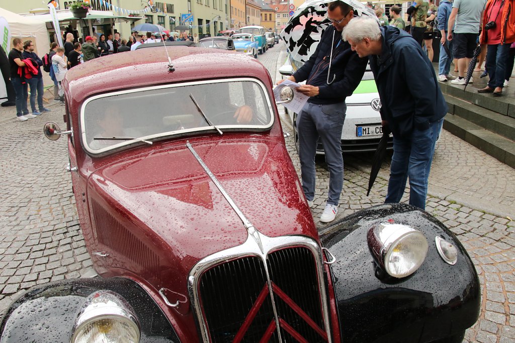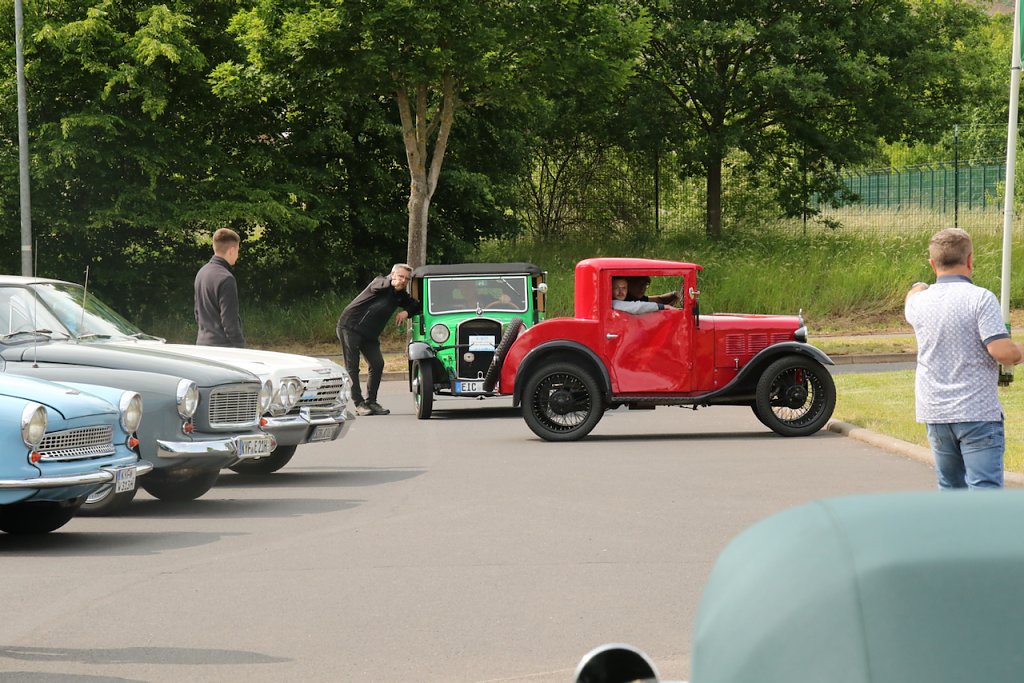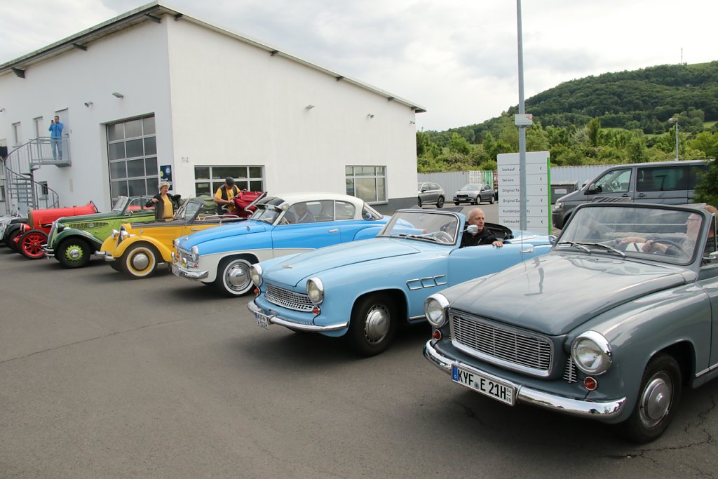 Nach etwas über einer Stunde Ausfahrt trudelten die historischen Fahrzeuge nach und nach am Zielpunkt ein, dem Autohaus Liebe in Sondershausen.