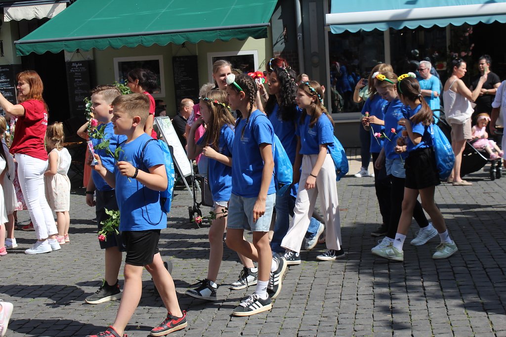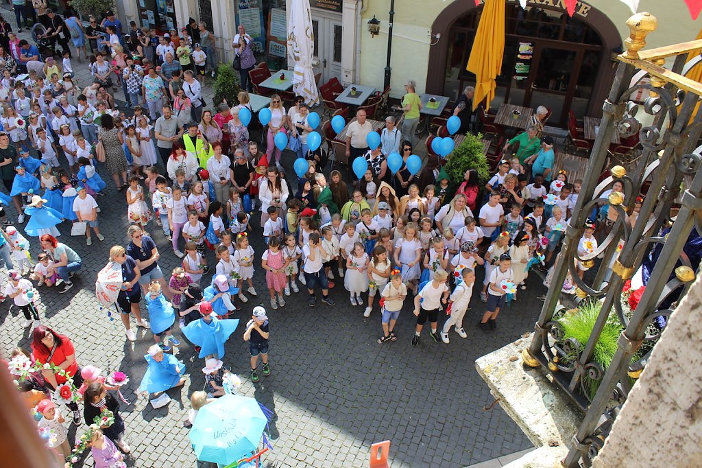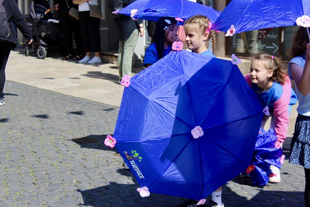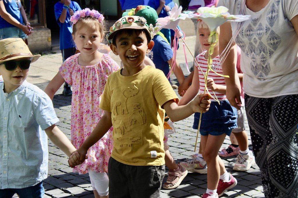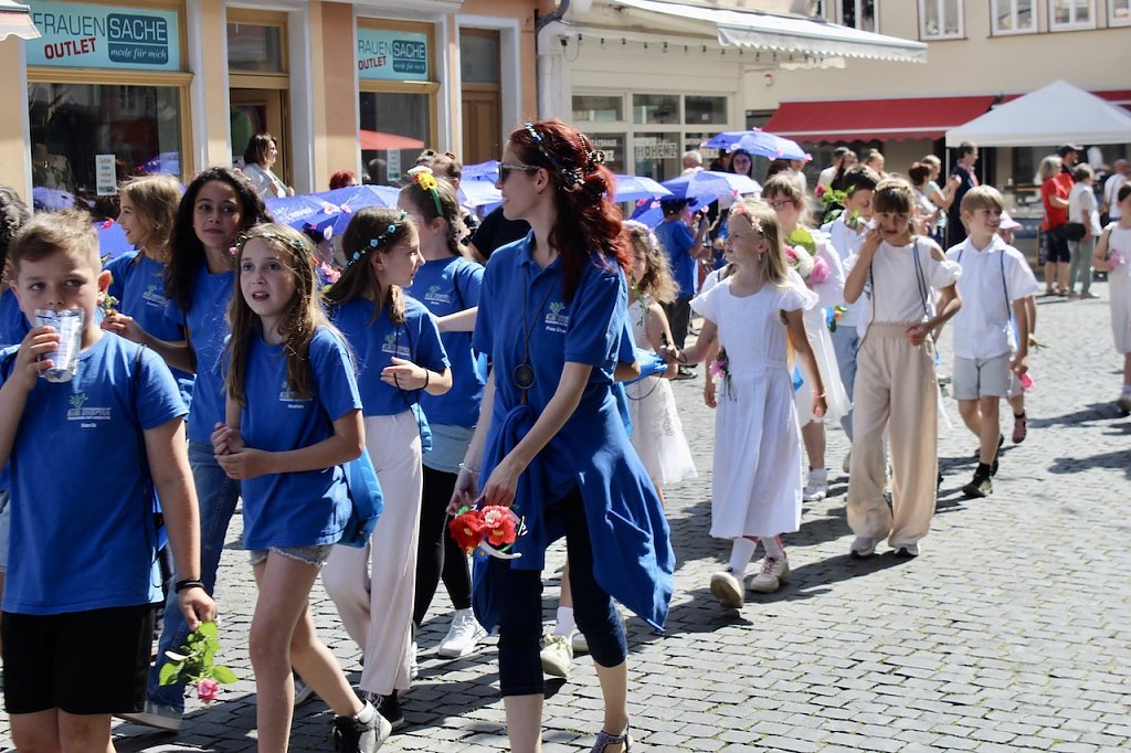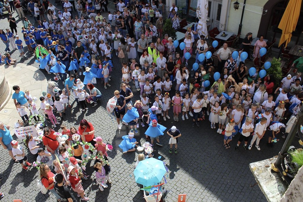 Traditionell waren heute Vormittag die Kindergärten der Rosenstadt mit ihren kleinen Brunnenfest-Fans unterwegs vom Schlösschenpark zum Rathaus. Und wie immer säumten zahlreiche Menschen die Straßen, um den Kindern zuzujubeln...