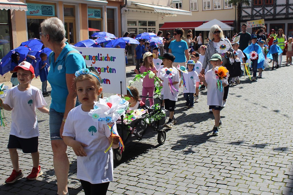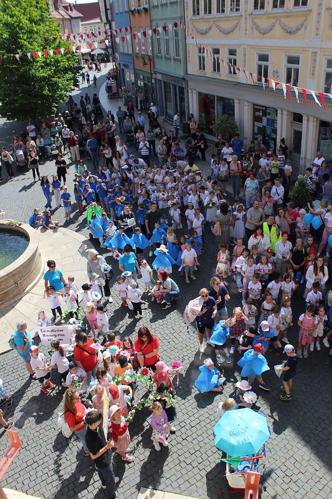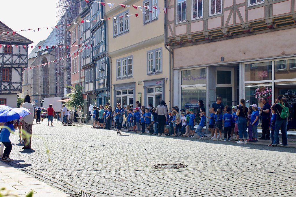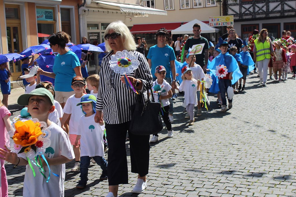 Ausgerüstet mit Rucksäcken und Getränken durch die Leitung der Celenus-Kurklinik zogen gut 300 Kindergartenkinder durch die Stadt. Mit von der Partie waren die Einrichtungen "Spatzennest", Kita Brikenwiese, Kita "Clara Zetkin", die "Unstrutspatzen", die "Salza Knirpse" und die Kita "Rosa Luxemburg". Weiterhin waren Grundschüler der Hufeland Grundschule, der Thepra- und der Sonnhofschule auf der Strecke.