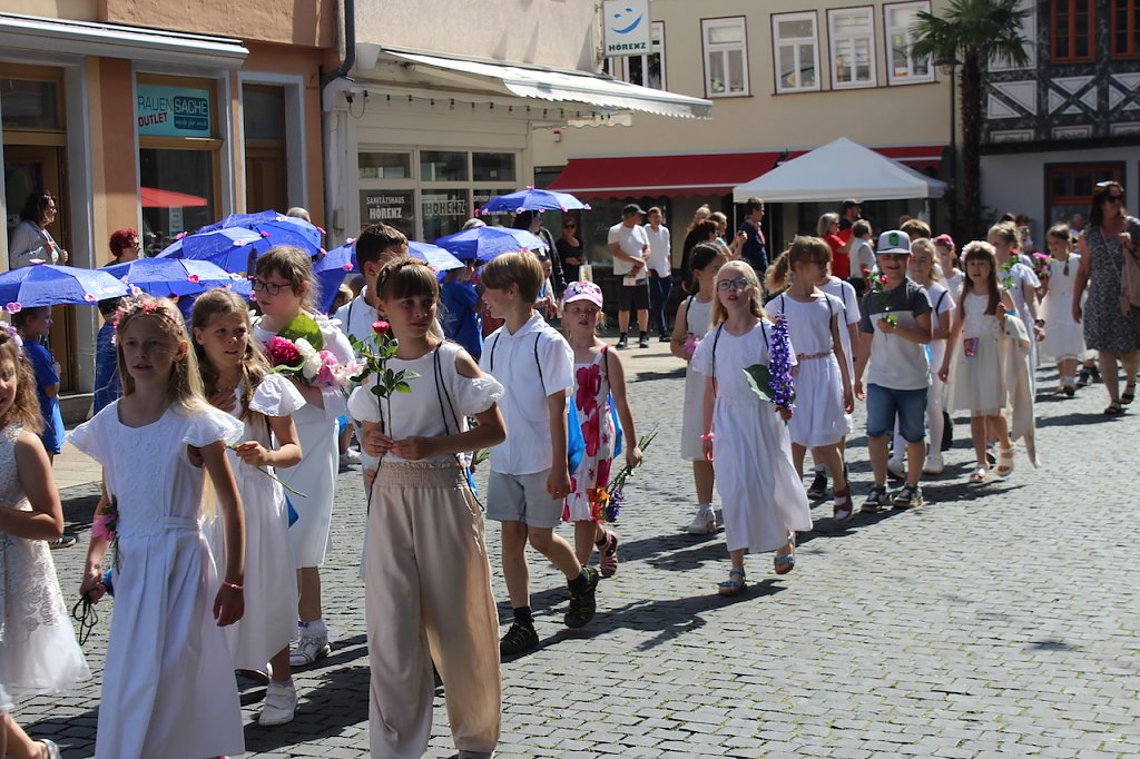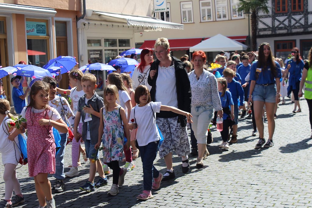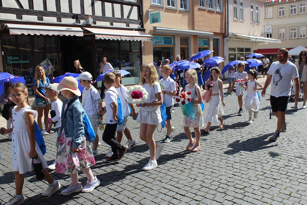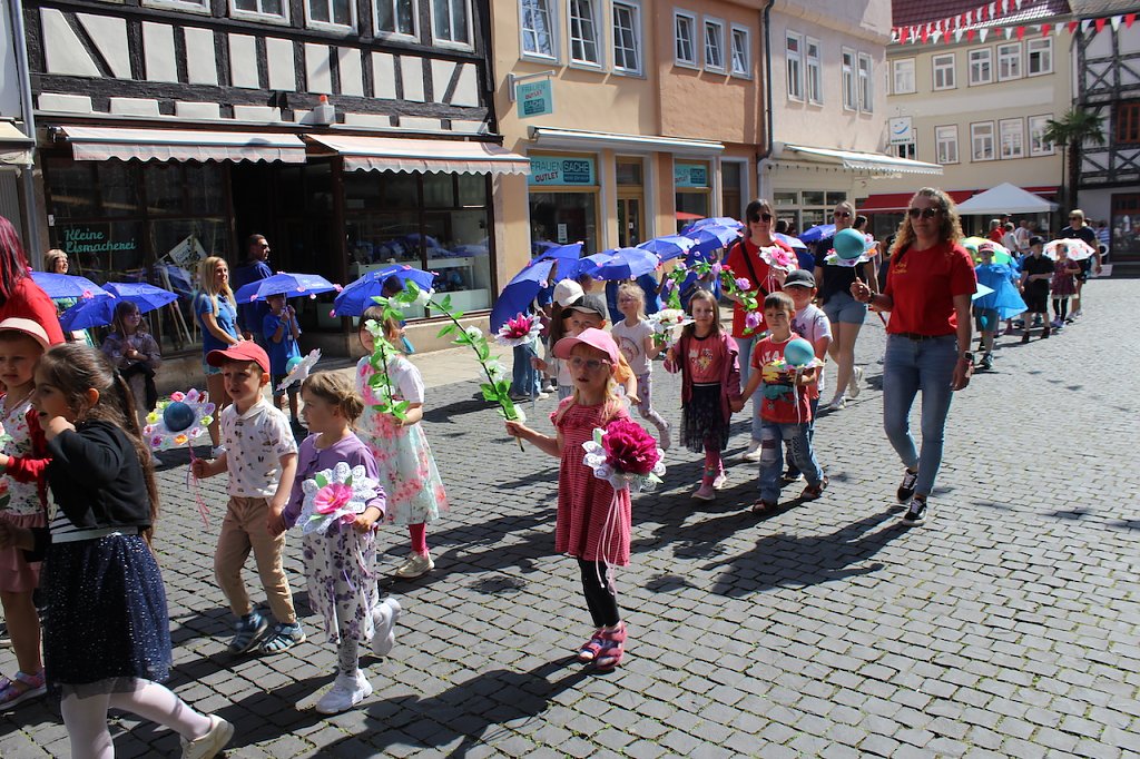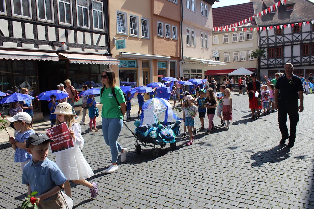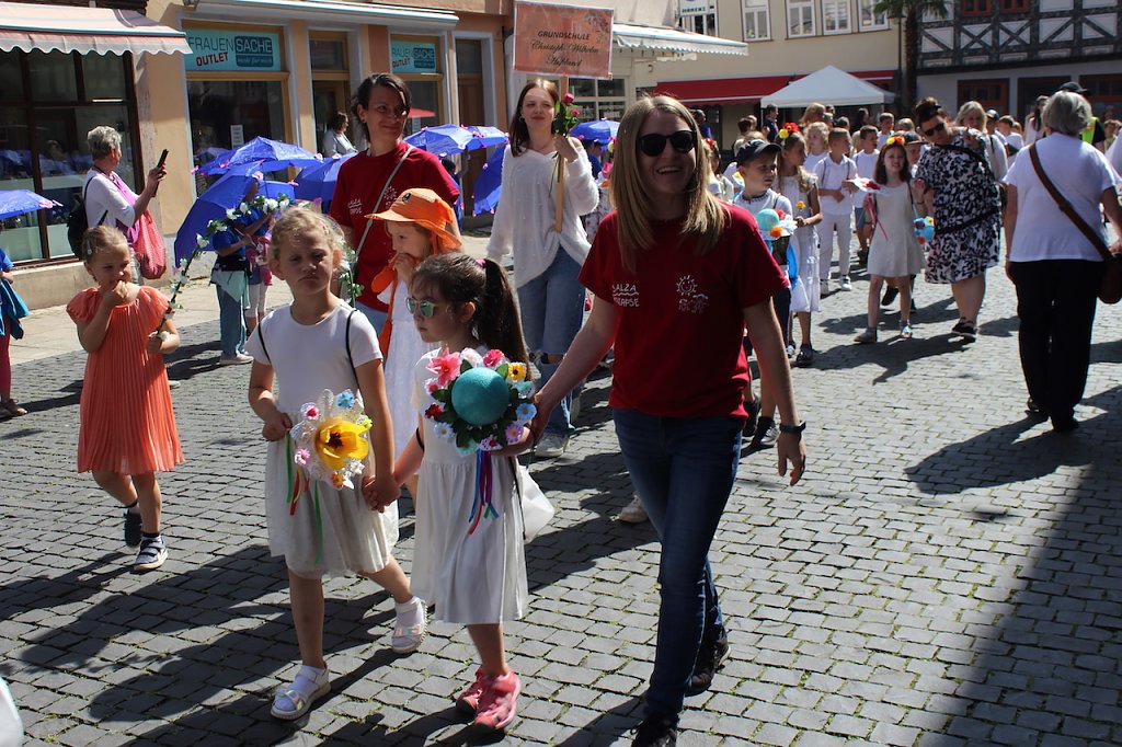 Angeführt von der Rosenkönigin, dem Bürgermeister und der Friederike liefen alle froh gelaunt bei schönstem Festwetter durch die Stadt. Ein wirklich schöner und harmonischer Auftakt des 213. Brunnenfests der Stadt Bad Langensalza.
