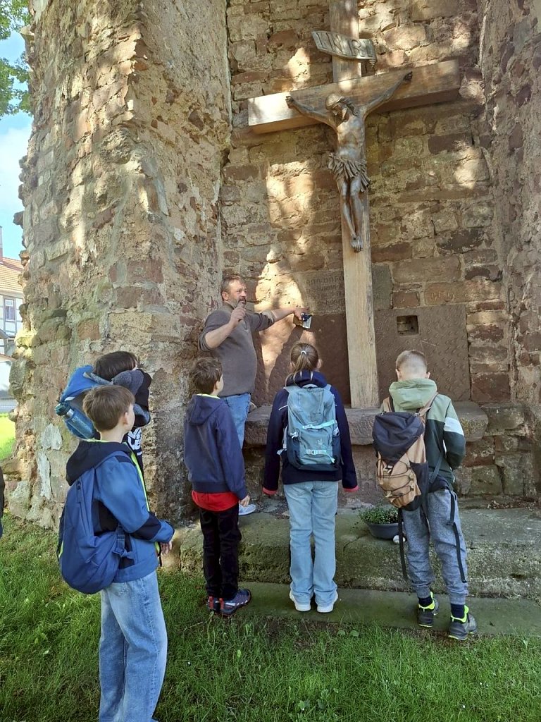 In Birkungen stärkte sich die Gruppe in der Festhalle Siechen bei einem kleinen Imbiss. Anschließend besuchten die Kinder das Dünkreuz, einen beliebten Aussichtspunkt, von dem aus sich ein weiter Blick über den Ort bietet. Letzte Station war Breitenholz. Hier erkundeten die Teilnehmer die Kirche, die markante Angerlinde sowie den Brunnen im Ortskern. Am Nachmittag kehrten die Kinder mit vielen neuen Eindrücken nach Worbis zurück. Die Rundfahrt vermittelte nicht nur spannendes Wissen über die Stadtteile, sondern stärkte auch das Gemeinschaftsgefühl und die Verbundenheit mit der Stadt.