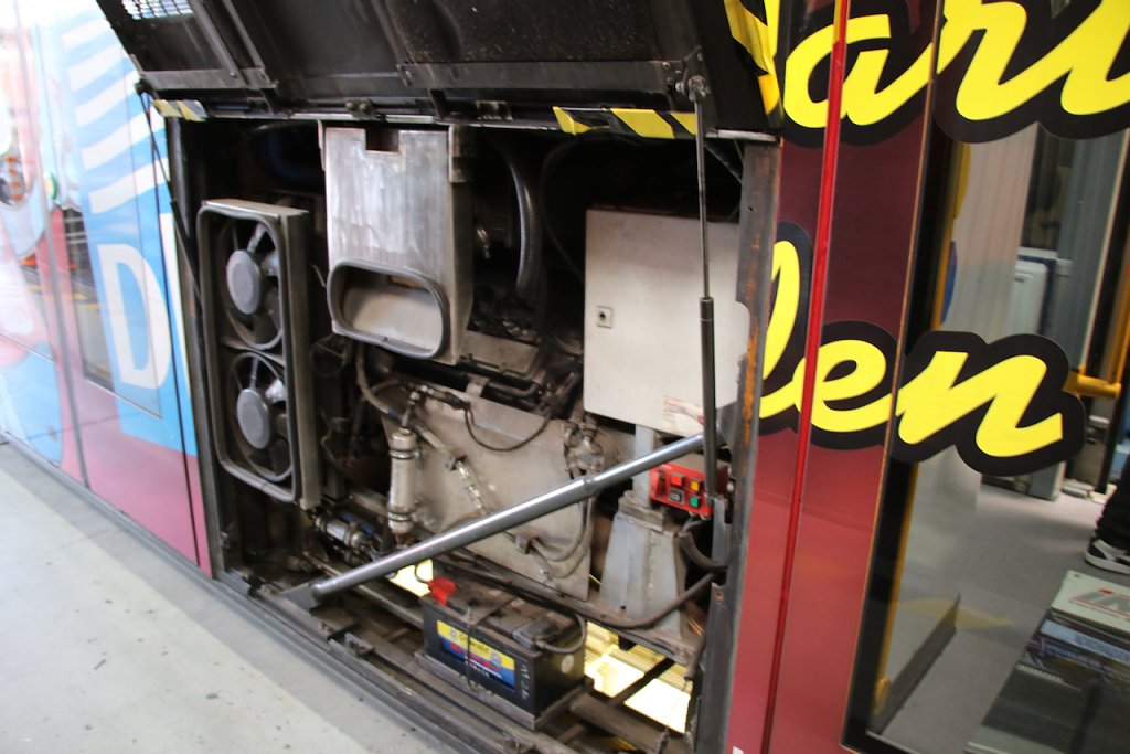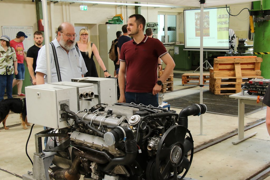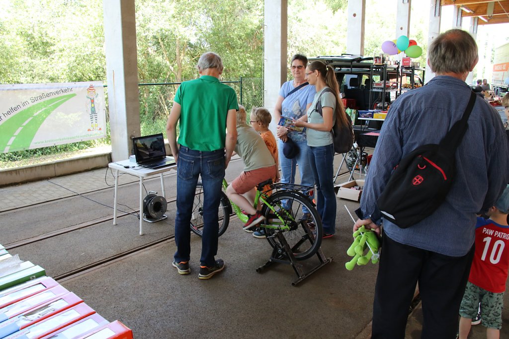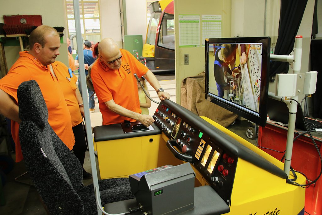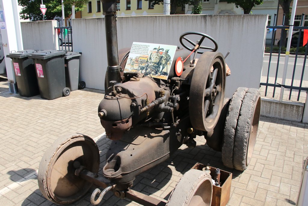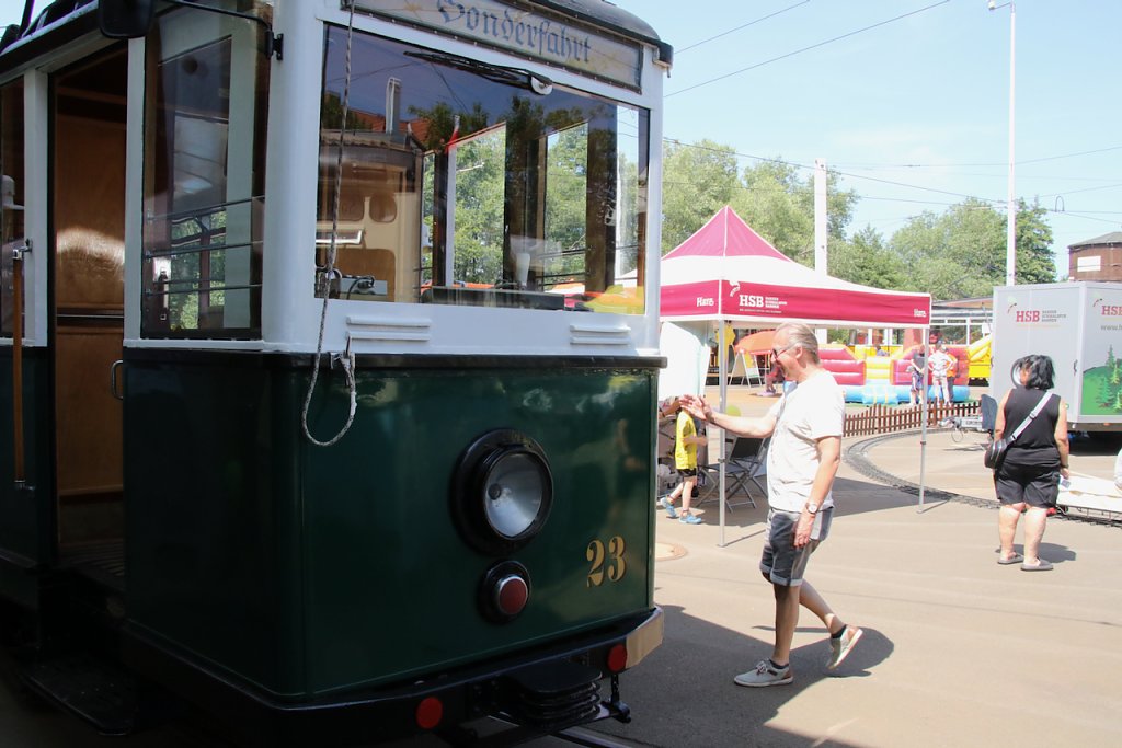 Im Straßenbahndepot in der Grimmelallee haben die Verkehrsbetriebe ihre Straßenbahnen und Begleitgefährte aufgefahren und lassen hinter die Kulissen und unter die Hauben blicken. Neben den Schienenfahrzeugen sind auch Freunde und Unterstützer mit dabei, etwa der Lanz-Bulldog-Club, die einen eigenen Oldtimer mitgebracht haben, den ältesten Traktor im Landkreis, Baujahr 1924.