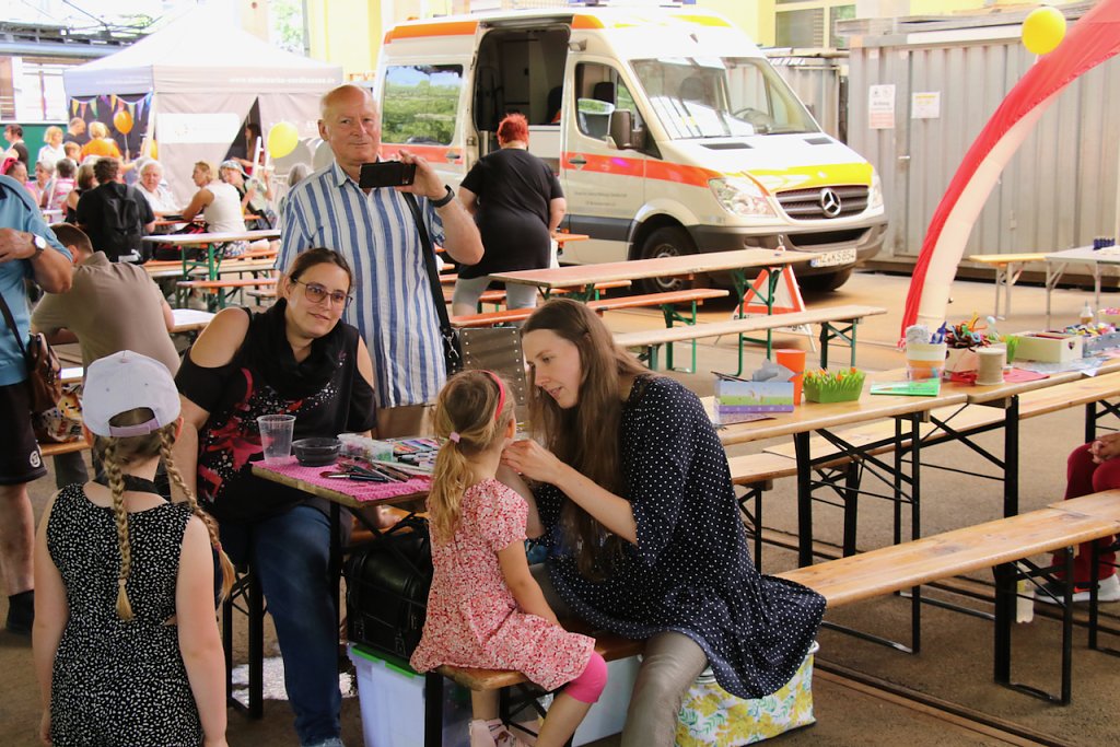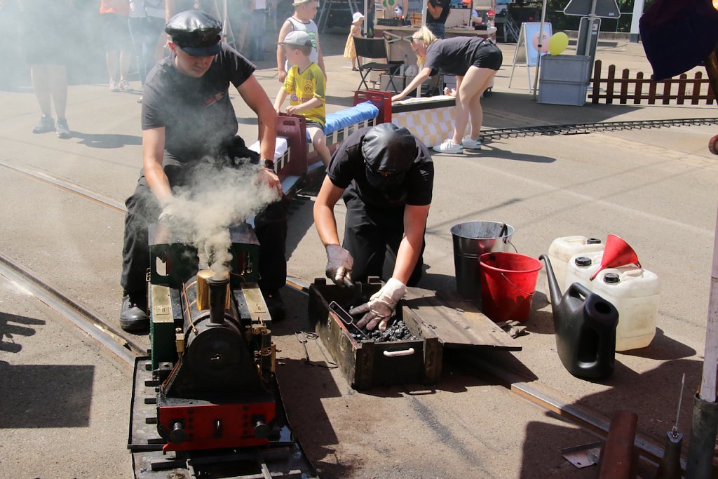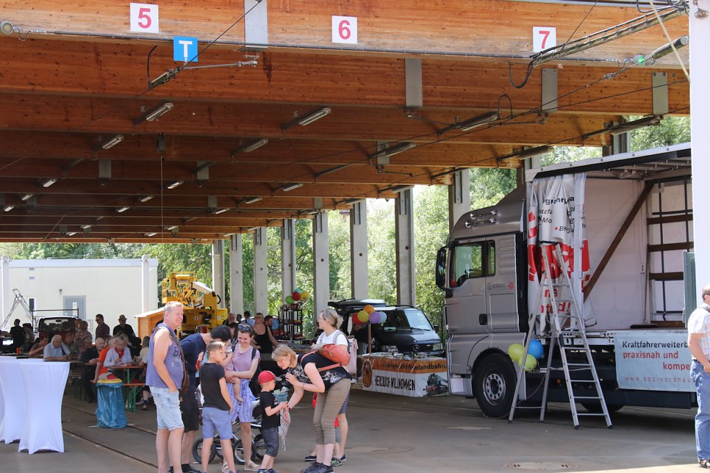 Für Verpflegung ist gesorgt und unter dem Dach des Depots lässt es sich trotz sommerlicher Temperaturen gut aushalten. Gefeiert wird noch bis 15 Uhr.