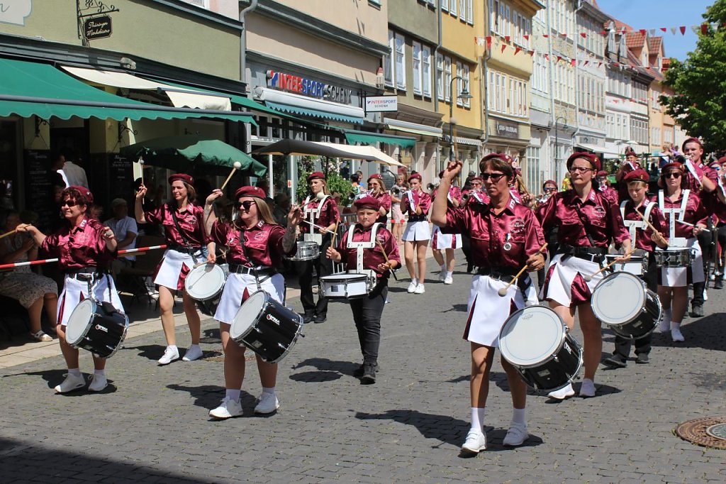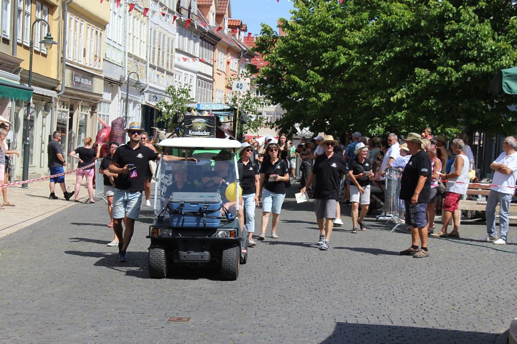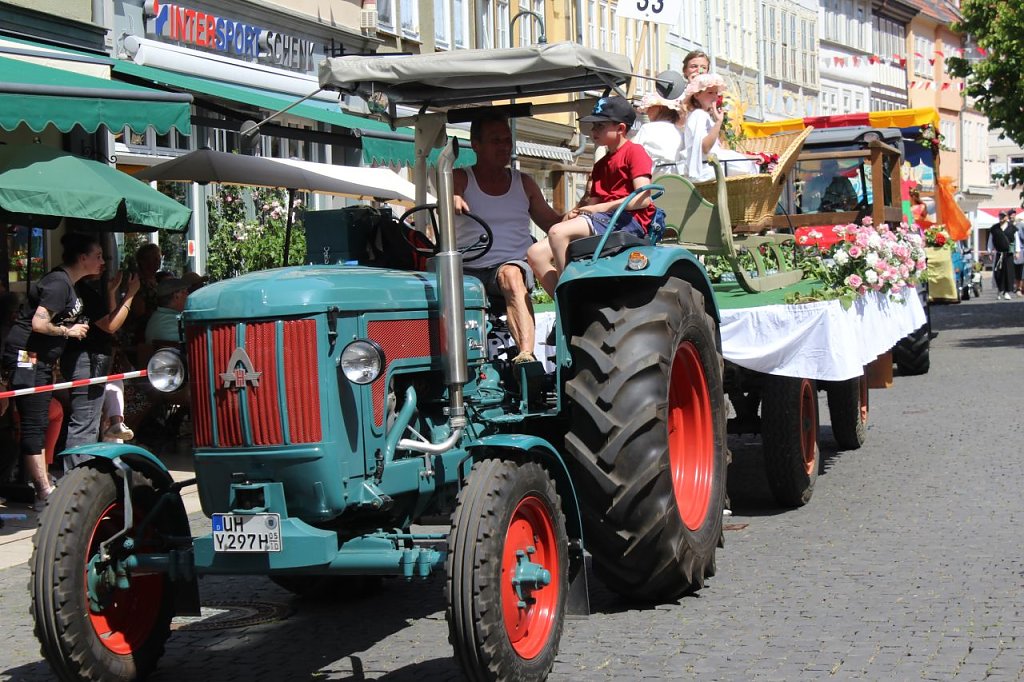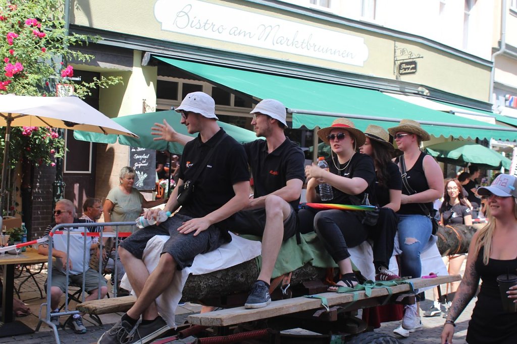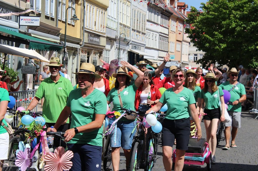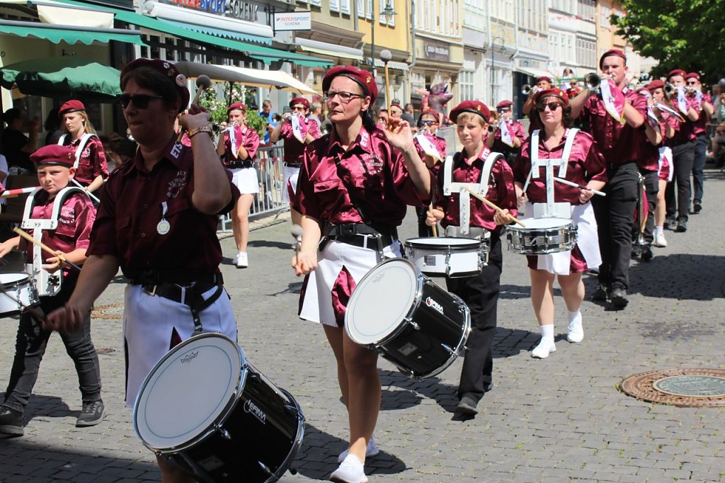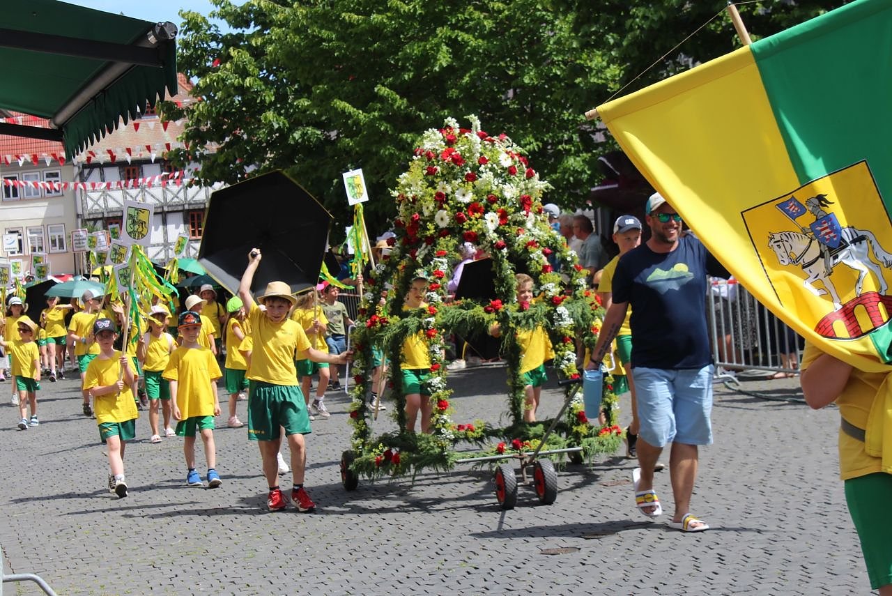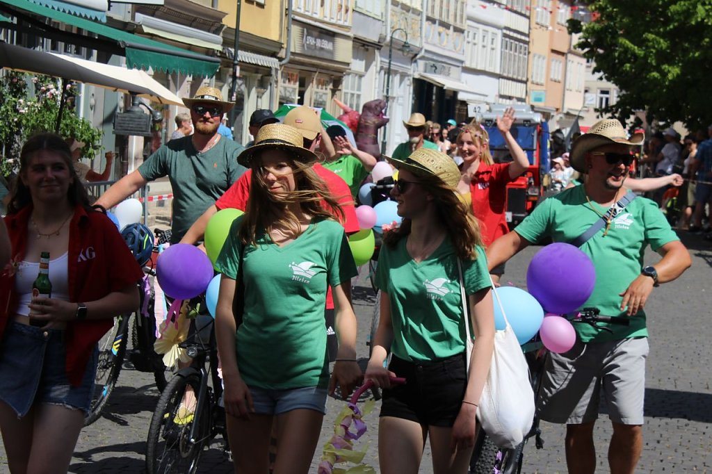 Trotz der tropischen Temperaturen waren viele Schaulustige an der Strecke und jubelten den tapferen Mitstreitern des Festumzuges zu. Von Kindergärten und Grundschulen über Spielmannszüge, Trommelgruppen und ehemaligen Rosenköniginnen bis hin zu Vereinen verschiedenster Couleur sowie den städtischen Betrieben und Institutionen bewegten sich die mehr als 60 Bilder am Nachmittag durch die Stadt.