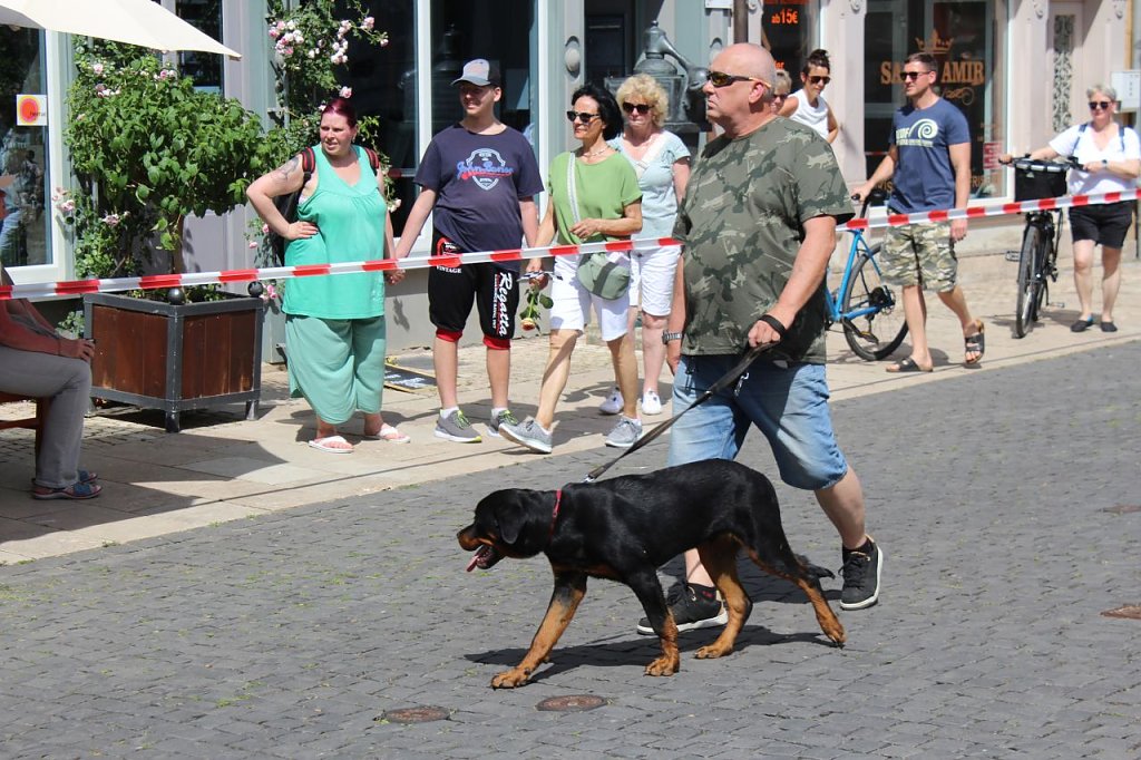 Trotz der tropischen Temperaturen waren viele Schaulustige an der Strecke und jubelten den tapferen Mitstreitern des Festumzuges zu. Von Kindergärten und Grundschulen über Spielmannszüge, Trommelgruppen und ehemaligen Rosenköniginnen bis hin zu Vereinen verschiedenster Couleur sowie den städtischen Betrieben und Institutionen bewegten sich die mehr als 60 Bilder am Nachmittag durch die Stadt.