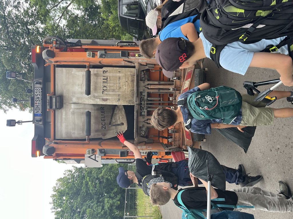 Neben Plastik, Zigaretten und Windeln sammelten die hochmotivierten Fünftklässler auch einen alten Rechner, unzählige Dosen und Flaschen auf. Die Aktion fand in Kooperation mit der Abfallwirtschaft Landkreis Nordhausen statt. Die Aktiven durften abschließend den Müll selbst in das Müllauto werfen.