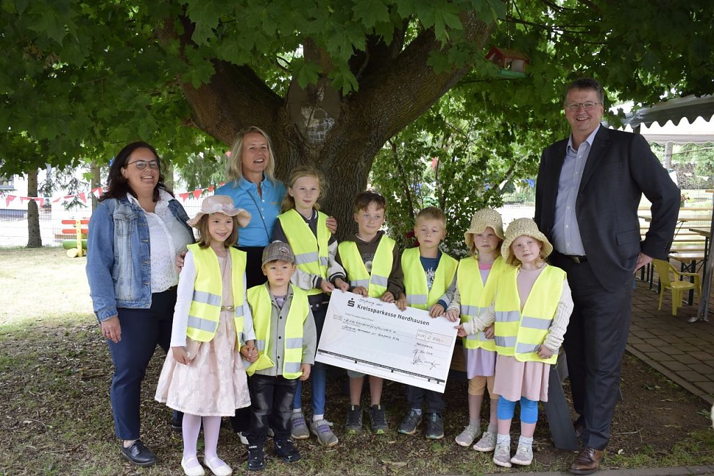 An dieser Stelle möchten wir ein besonderes Dankeschön an die Kreissparkasse Nordhausen aussprechen. Ein Scheck für die Ausstattung in Höhe von 2500€ konnte durch Herrn Thomas Seeber, Vorstandschef der Kreissparkasse, feierlich überreicht werden. Als Vetreter des Landkreises überreichte darüber hinaus Herr Stefan Nüßle persönliche Glückwünsche.