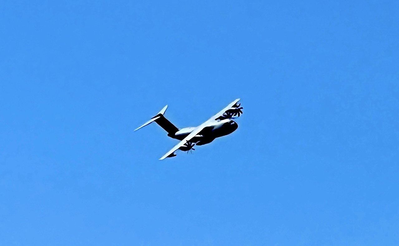 Ein dumpfes Grollen kurz vor 11.55 Uhr über der Hainleite ließ die Menschen heute erstaunt zum Himmel schauen. Von Straußberg her kommend war im Tiefflug ein Airbus A400M Atlas der Luftwaffe der Bundeswehr unterwegs...