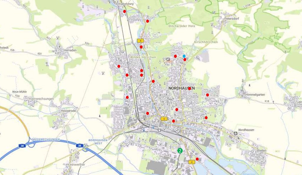 Trotz des Abzugs dieser Container bleiben weiterhin 21 Altkleidercontainer auf öffentlichen Flächen im Stadtgebiet erhalten. Die verbleibenden Altkleidercontainerstandorte sind auf der beiliegenden Karte ersichtlich. Zusätzlich befinden sich weitere Sammelcontainer auf privaten Parkplätzen von Discountern. Die Stadt und der Landkreis Nordhausen versichern, dass die Entsorgung von Textilabfällen für die Bürger weiterhin sichergestellt ist.