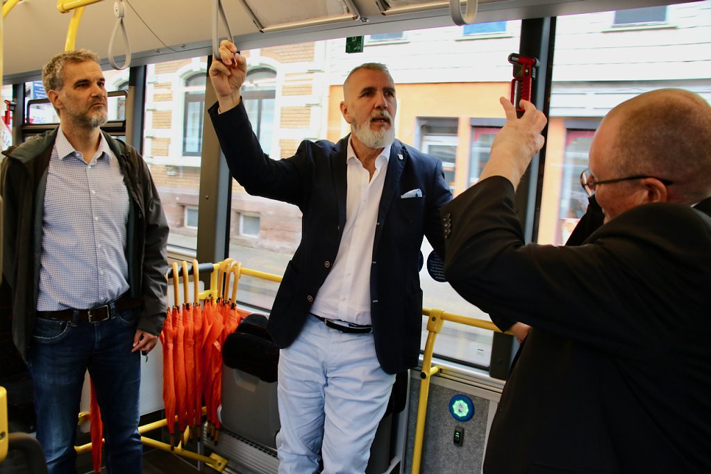 Begleitet wurde der Besuch aus Erfurt durch den Leiter der Nordhäuser Verkehrsbetriebe, Thorsten Schwarz und Oberbürgermeister Kai Buchmann. Den dürfte die Stippvisite besonders gefreut haben, hatte doch der Minister Ende Juni angekündigt, die Lasten im Öffentlichen Personennahverkehr neu verteilen zu wollen und Änderungen am Thüringer Finanzausgleichsgesetz vorzunehmen.