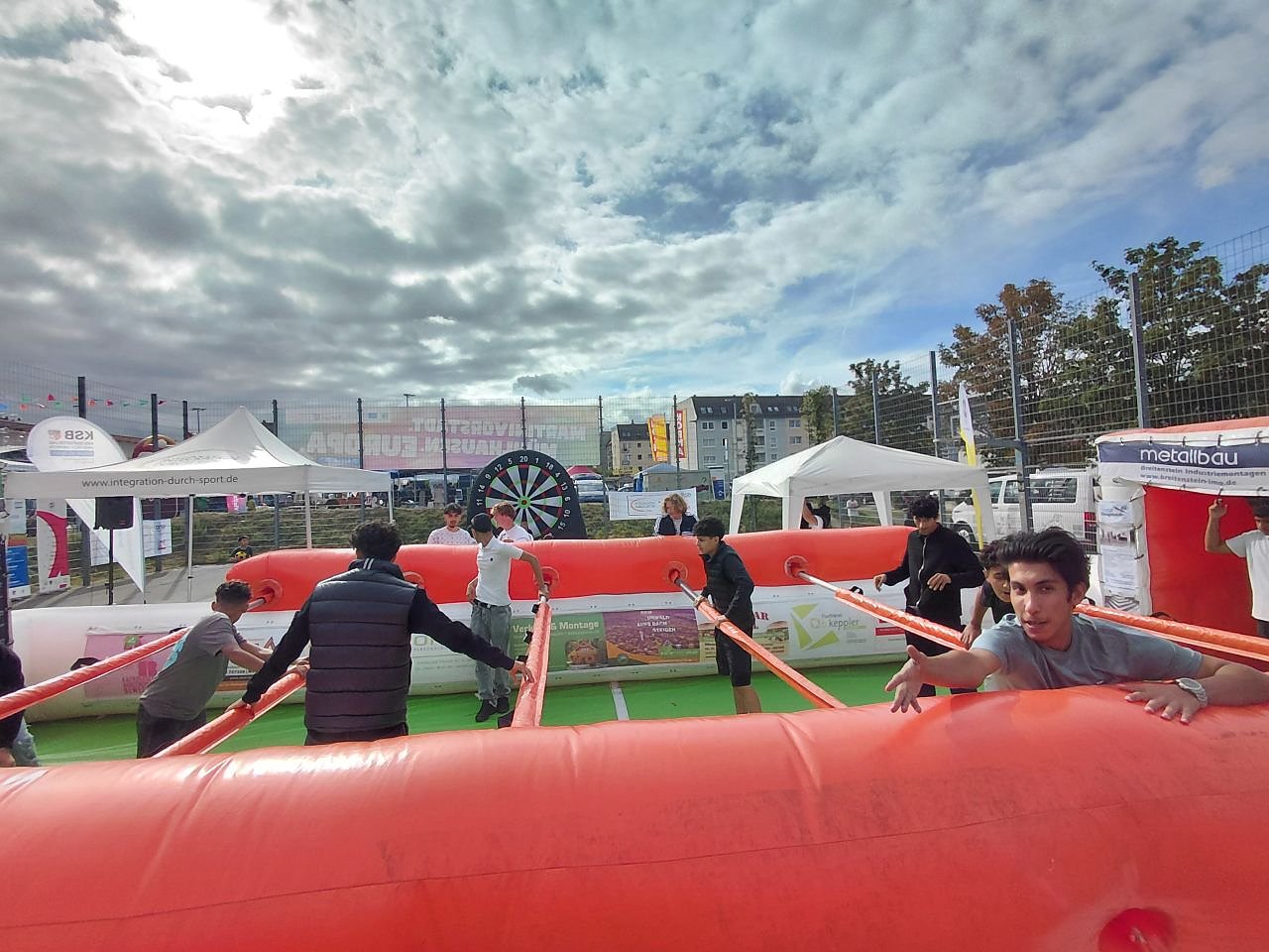 Auf dem Bolzplatz ging es sportlich zu mit einer Kletterwand sowie dem Fußballdart des Kreissportbundes und einem aufgeblasenen Menschenkicker. Verhungern musste an diesem Nachmittag auf jeden Fall niemand. Neben diversen Speisen vom Grill, gab es ein reichhaltiges und internationales Kuchenbuffet, welches verschiedene kulturell aufgestellte Vereine anboten.