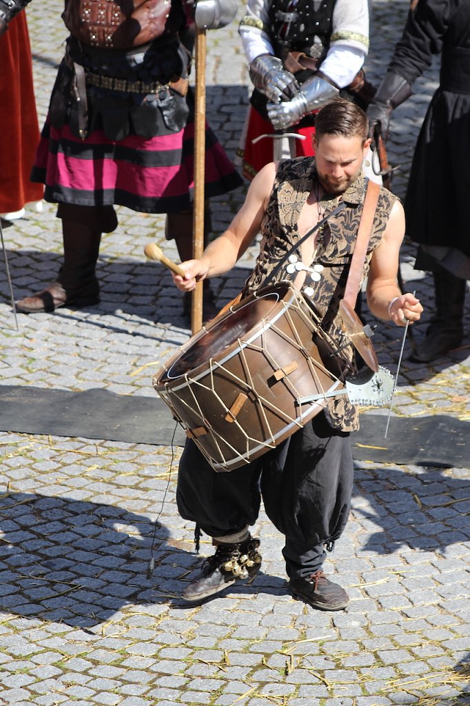 Im Vorfeld gab es einigen Lärm um das Fest, das seine nächste Auflage erst in zwei Jahren erblicken soll, wenn es nach Bürgermeister Matthias Reinz und den Verwaltern des Stadtsäckels mit (leider) nur noch wenigen Talern geht. Das Stadtoberhaupt dankte dann auch ausdrücklich seinen Mitarbeitern im Rathaus, aber auch allen Helfern seiner Fachbereiche und lobte alle Ehrenamtlichen und Freiwilligen, ohne deren Einsatz ein solches fest nicht mehr durchführbar wäre. Und er wisse, sagte er, dass ihn momentan der eine oder die andere für seine Entscheidung am liebsten auf der Streckbank beim Henker vor dem Rathaus liegen sähe. Doch leider sei ihm keine andere Wahl geblieben.