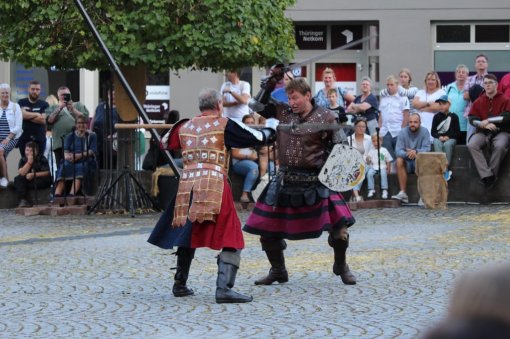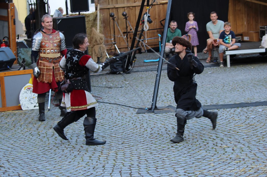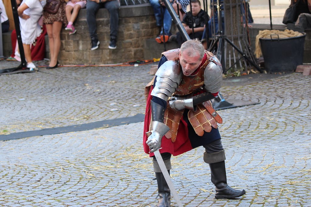 Überall wabern leckere Gerüche durch die historische Innenstadt und die Klänge gediegener akustischer Instrumente erfüllen Gassen und Plätze. In unserer Fotogalerie präsentieren wir Ihnen auch Impressionen der Rittergruppe Herold, die auf dem Töpfermarkt die Klingen kreuzt und die Funken stieben läßt. Die Kämpfer (und die Kämpferin) aus Böhmen zeigen auch morgen noch Schaukämpfe in hoher Präzision und Dynamik.