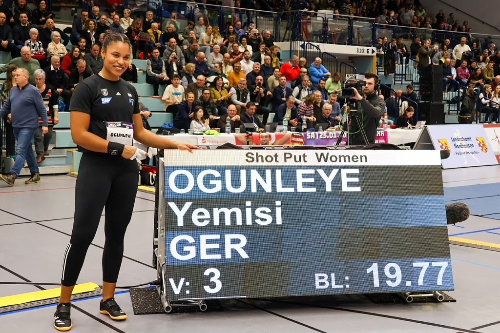 Bei den Frauen (Sa. d. 20.09) gilt die deutsche Olympiasiegerin und zweifache Nordhausen – Siegerin Yemisi Ogunleye nicht als Medaillenkandidatin, da sie in der Weltbestenliste 2025 mit 19,67 m auf Rang acht liegt. Favoritin ist die Zweitplatzierte des Nordhausen - Indoor 2024, Chase Jackson aus den USA. Sie führt die Weltbestenliste deutlich mit 20,95 m an. Trotzdem sollte man Ogunleye nicht unterschätzen. Auch sie kann 20 Meter weit stoßen und in die Medaillenränge vorrücken. Neben diesen beiden Athletinnen sind fünf weitere Nordhausen–Starterinnen im Kampf um die Medaillen und Preisgelder dabei. Der Siegerin winkt ein Preisgeld in Höhe von 60.000 Euro.