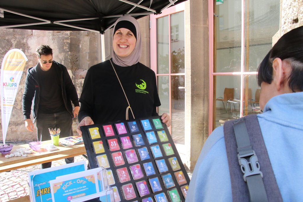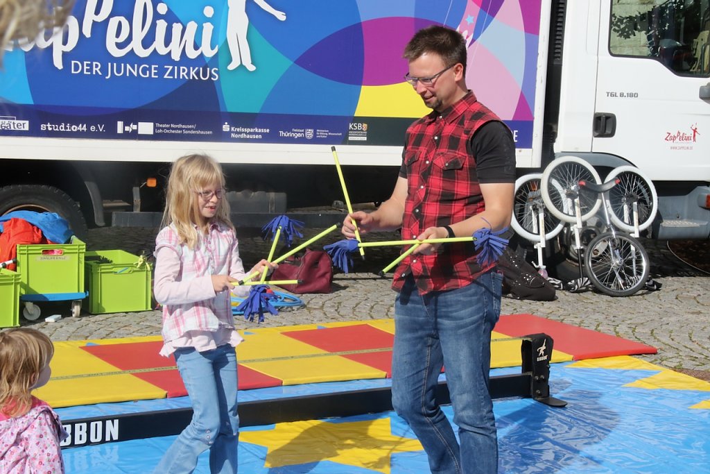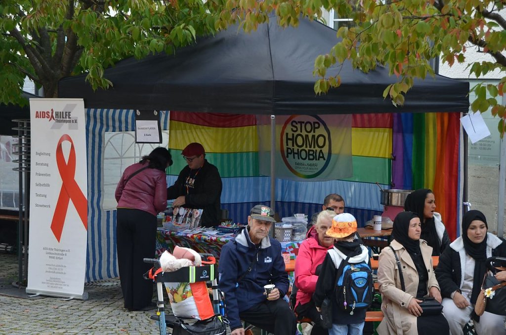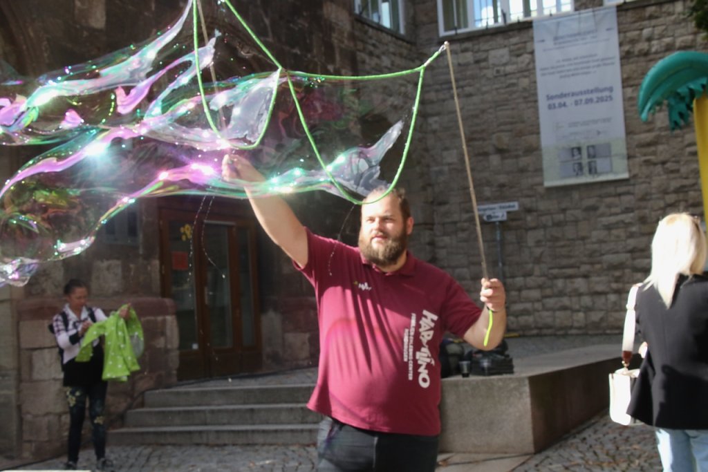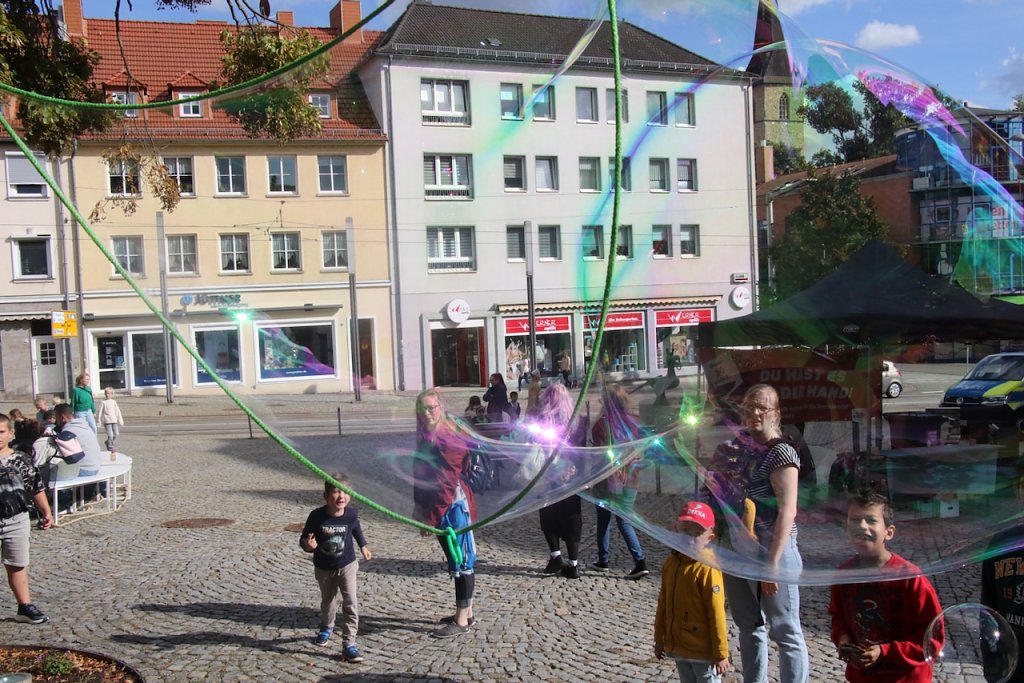 Mit Musik, gutem Essen, Spiel- und Spaß für die Kleinen und Redebeiträgen wie dem Hammers sichert man sich ab gegen die Einsamkeit der Sorge und will frohen Mutes feiern. Auf der Bühne stehen Menschen aus Nordhausen, etwa der Chor der pro vita der eine Ode an den Frieden zum Besten gab, wie auch Menschen die es hierher verschlagen hat, wie vier junge Mädchen aus der Gemeinschaftsunterkunft in Sülzhayn, die sich zum tanzen auf die Bühne getraut haben.