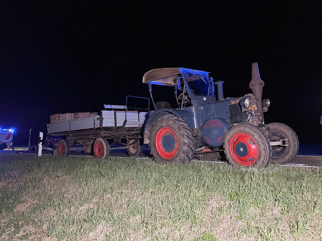Auf dem Anhänger saßen eine 73-jährige Frau sowie ein 10-jähriges Kind. Nach Informationen der Polizei und von Zeugen war die Beleuchtung an dem Anhänger des Gespanns außer Funktion. Dies wurde einem 62-jährigen Motorradfahrer zum Verhängnis, der ebenfalls die Landstraße in Fahrtrichtung Landesgrenze befuhr.