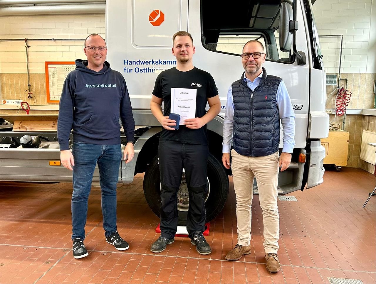 Robert Rausch aus der Autohaus-Peter-Gruppe erreichte beim Landesleistungswettbewerb ein bemerkenswertes Ergebnis. Er kam auf Platz 8. Ein Top-Ergebnis, denn der Pool der möglichen Kandidaten bestand aus den etwa 650 Thüringer Prüflingen der Gesellenprüfung im Januar 2025. Die mit den besten Prüfungsergebnisse wurden eingeladen.