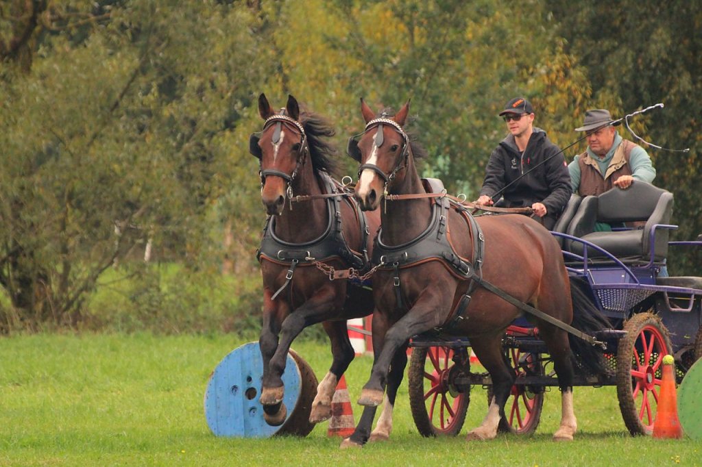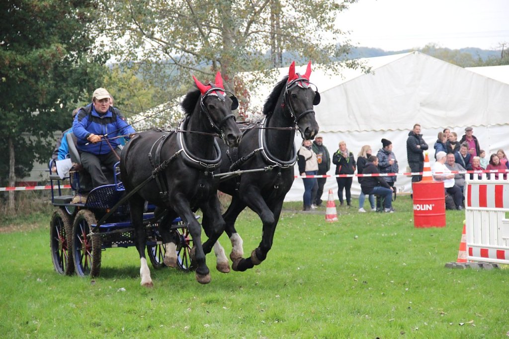 Eine Premiere hatte der einzige Teilnehmer, welcher nur ein Pferd angespannt hatte- Marco Müller aus Stempeda stellte sich mit dem Deutschen Sportpferd Quirinus den Aufgaben. Beide sind Anfänger auf ihrem Gebiet und meisterten die Geländefahrt und den Parcours ohne Probleme.