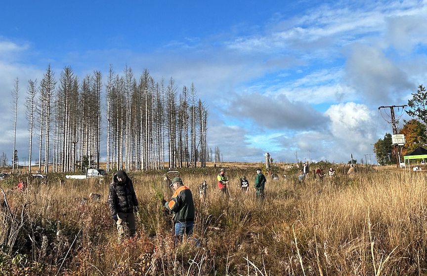 Etwa 50 Teilnehmer unterstützten das Team des Forstamtes bei der Wiederbewaldung einer vom Borkenkäfer zerstörten Fichtenfläche bei Sophienhof. Es wurden 1100 Bäume, darunter Lärchen und Douglasien gepflanzt. Diese Baumarten eignen sich durch ihre Widerstandskraft bei Trockenheit besonders gut für den Klimawandel und sorgen somit langfristig für einen stabileren Wald.