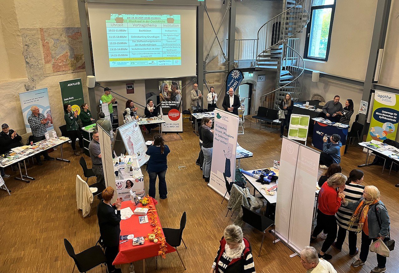 Es war ein voller Erfolg mit einem vielfältigen Informations-, Mitmach- und Beratungsangebot rund um das Älterwerden und die aktive Teilhabe am gesellschaftlichen Leben. Die offizielle Eröffnung erfolgte durch Bürgermeister Steffen Grimm, der in seinem Grußwort die Bedeutung der Veranstaltung für die ältere Generation betonte. Die sehr gut besuchte Cruciskirche bot den idealen Rahmen für diesen besonderen Tag.