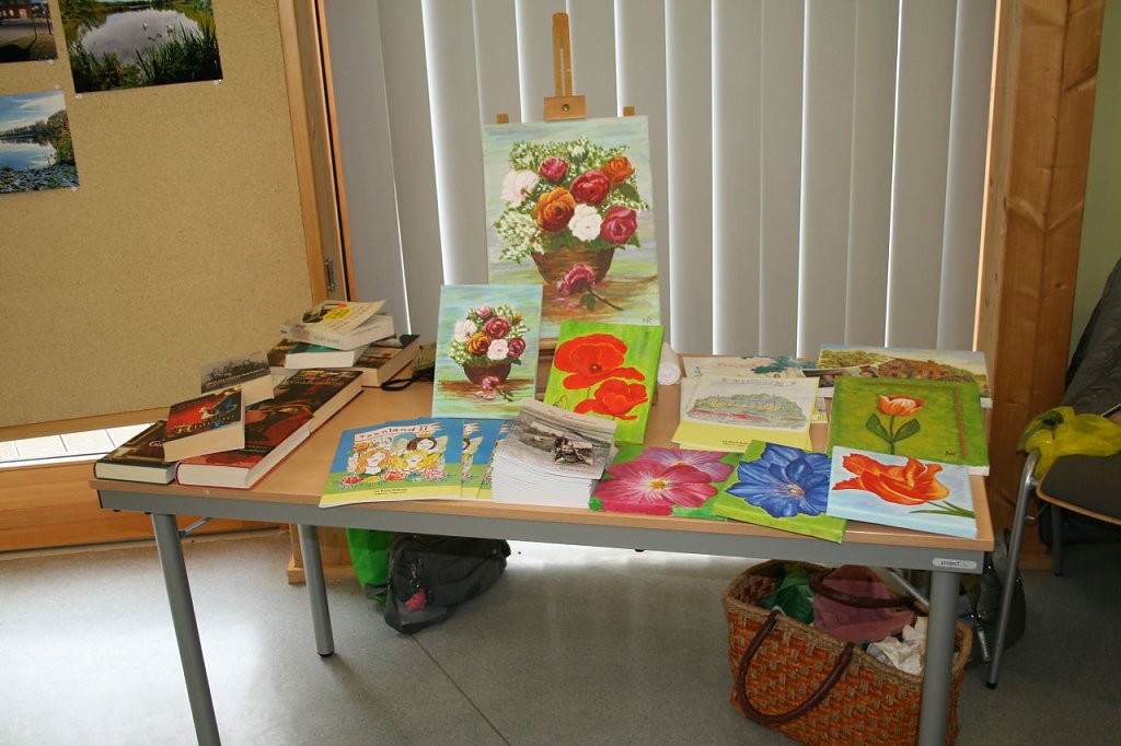 Die zahlreichen Besucher konnten viele schöne Sachen bewundern. Deko, Drechselarbeiten, Gestalten mit Naturmaterial, Strickwaren, Floristik, Fotos, Malerei sowie eine Modelleisenbahnanlage waren dabei. Eine schöne Veranstaltung, der sicher noch einige folgen werden. Hier ein paar Schnappschüsse.