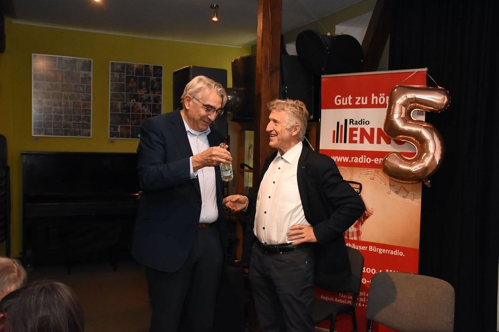 Bereits am Vormittag hatten Radio-Team und Förderverein zum offiziellen Teil der Feierlichkeiten in die "Jazzmangel" in der Barfüßerstraße geladen. Am Nachmittag konnte man die Leute im Sender begrüßen, für die man seit einem Vierteljahrhundert regionales Radio macht: die Bürgerinnen und Bürger.
