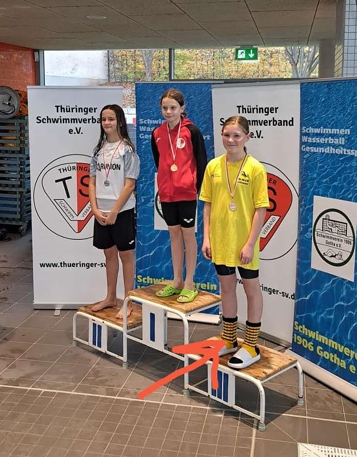 Lenya Kurtz (JG 2007 -Junioren) mit 4 Starts wurde in 50 und 200 m Delphin Thüringer Juniorenmeister. In 50 m Rücken und 100 m Freistil erreichte sie die Silbermedaille. Auch sie bewältigte am Nachmittag noch einmal die 200 m Delphin im Finale und erreichte den 3. Platz.