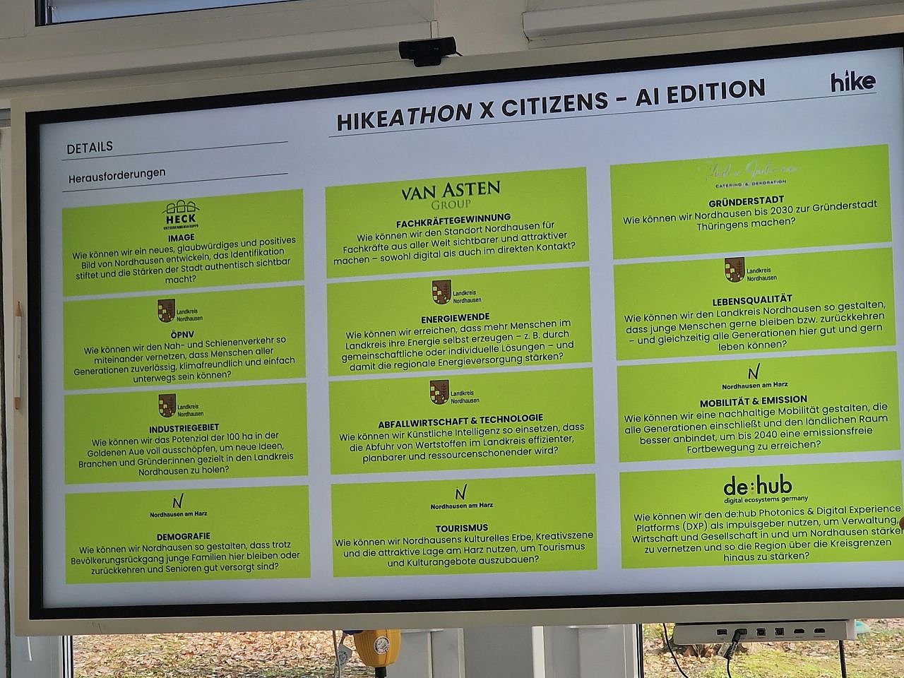 Im Moment sind bereits 65 Anmeldungen eingegangen, es ist also noch reichlich Platz für Nordhäuserinnen und Nordhäuser, die nicht nur meckern sondern auch machen wollen. Die Themenauswahl ist breit gefächert und reicht von Nachhaltigkeit, Technologie und KI über Mobilität, Fachkräftegewinnung, Gründungskultur, Demographie, Tourismus und der Entwicklung des Industriegebietes bis zu Energiewende, Abfallwirtschaft und dem Image der Region an sich.Eine Übersicht zu den Challenges des HIKEathon sowie die Möglichkeit zur Anmeldung finden sich auf der Website des HIKE. Wer mitmachen will, kann sich hier noch bis zum 21. November registrieren, der HIKEathon selbst findet am 28. und 29. November im Audimax der Hochschule statt.