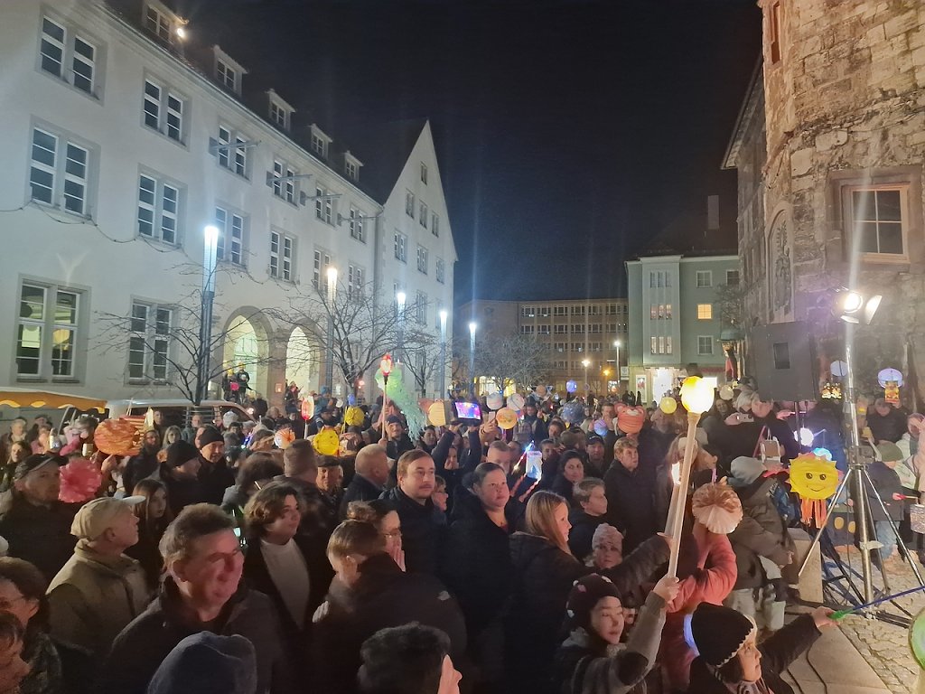 Der Herbst hat es heute gut gemeint mit den Nordhäusern: ein milder Abend, freie Sicht auf den Petersberg und dazu ausreichend Martinsbrezel für jedermann...