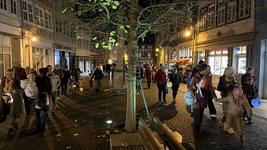 Mit einem Spielmannszug und der Freiwilligen Feuerwehr voran und schönem klaren Wetter, machten sich unzählige Kinder mit ihren glitzernden und blinkenden Laternen auf den Weg zum Jahnplatz.