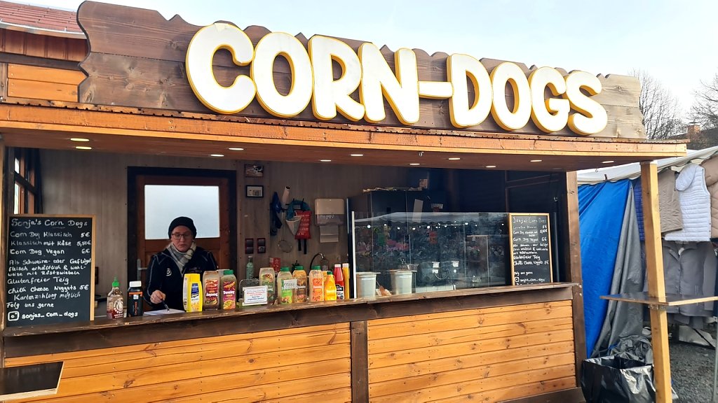 Gleich neben Ludwig am Stand von Corn Dogs lerne ich die junge Kfz-Mechanikerin Sonja Guhlke kennen. Die 32-Jährige konnte leider in einer noch reinen Männerdomäne keinen Fuß fassen und wurde von ihren männlichen Kollegen nicht akzeptiert. Ihre Freude am Austausch mit Menschen hat sie nun in ihrer Tätigkeit als Marktschreierin gefunden.