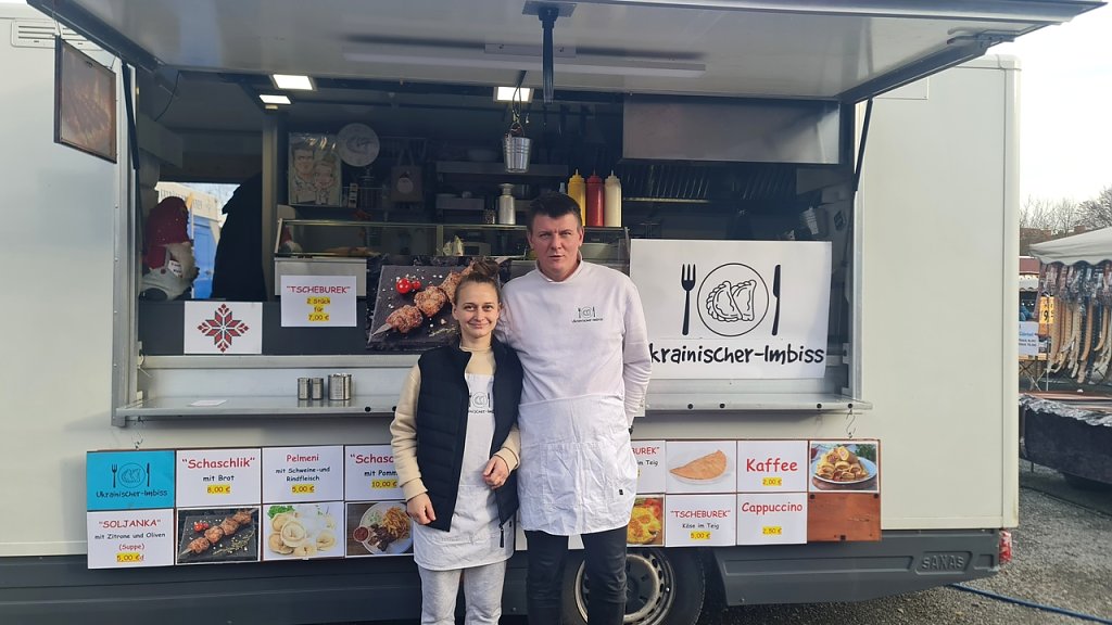 Gleich gegenüber duftet es nach Tscheburek (Käse im Teig). Es sind ukrainische Spezialitäten im Angebot und ich komme mit Sofia und Iwan aus Blankenburg ins Gespräch. Die Juristin und der Pharmazeut sind das erste Mal beim Markt dabei und kamen vor drei Jahren nach Deutschland. Sofia erzählt mir, dass sie in der Ukraine Jura studiert hat und ein Master-Diplom besitzt.