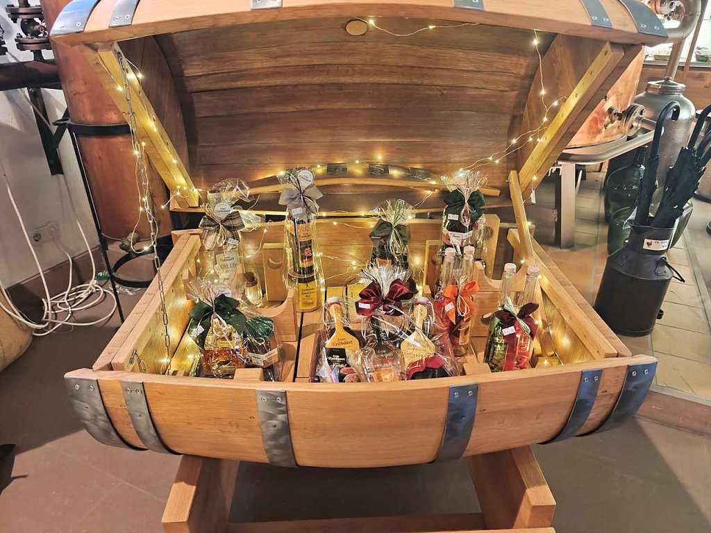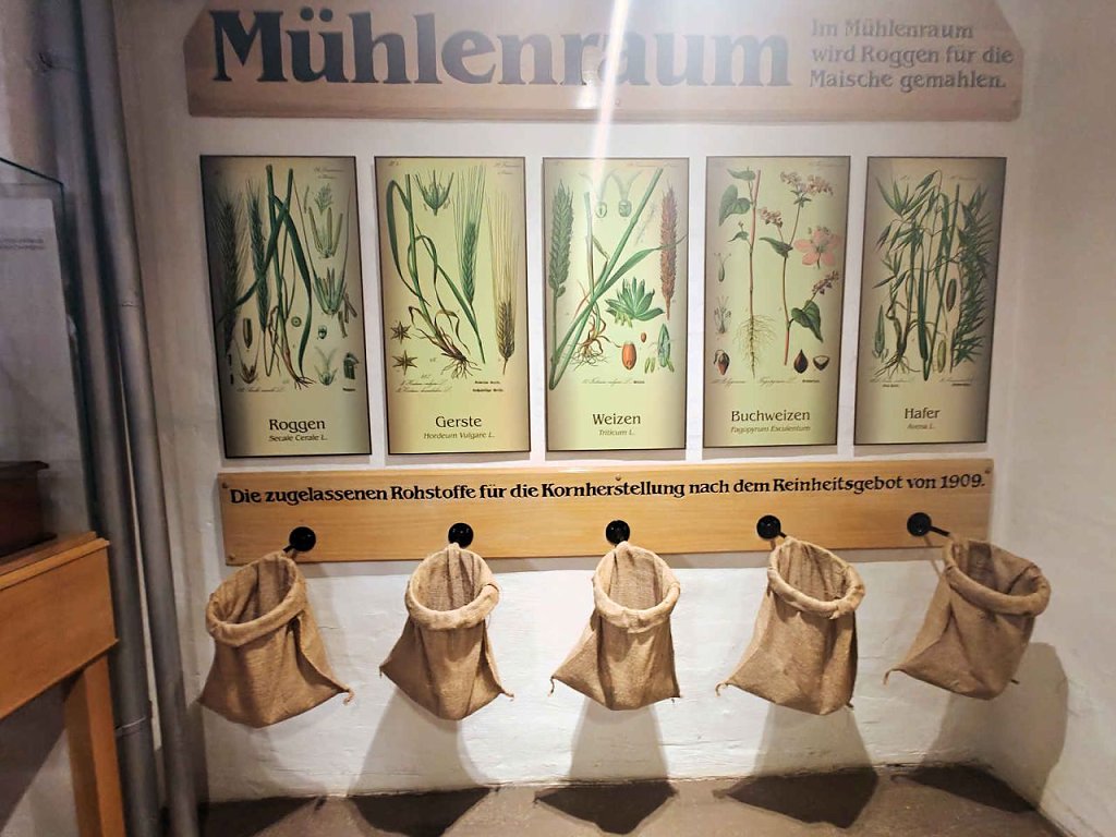 Nach kurzer Einführung und Rundgang konnten wir und noch gut 20 Gästen einige Hochprozentige kosten. Herr Müller erklärte die Kornherstellung und wie alles begann.