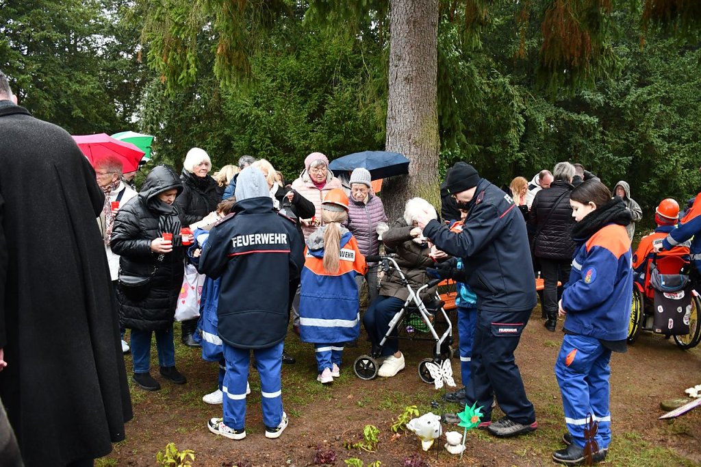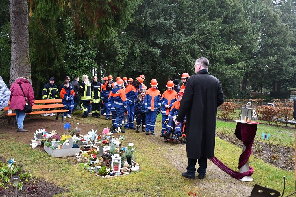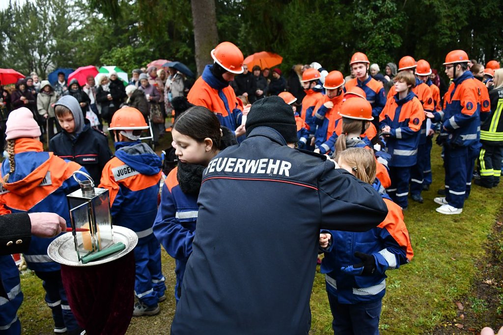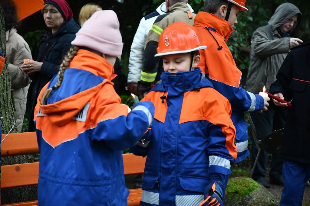 Übergeben durch die Jugendfeuerwehr Nordhausen Mitte fand das Licht seinen Weg zum Schmetterlingsfeld, um den Schmetterlingskindern zu gedenken. Nach einer kleinen Rede und ein paar nachdenklichen Worten von Herrn P. Tobias Titulaer