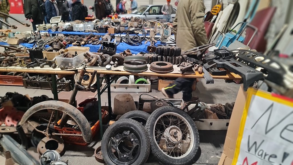 Begleitet wurde die Messe wieder von einem Teilemarkt, auf dem die Sammler und Schrauber nach gesuchten Originalersatzteilen oder wertvollem Zubehör stöbern konnten. An rund 300 Verkaufsständen wurden hunderttausend Raritäten angeboten. Nicht nur rostige Raritäten, sondern auch fabrikneue Produkte. Motoren für Trabant, Opel Kadett, Wartburg und unterschiedliche Motorräder, die schon lange nicht mehr hergestellt werden zum Beispiel.