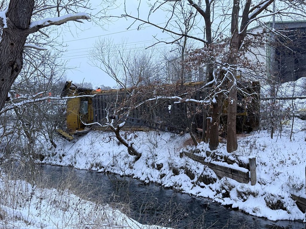 Aus bisher ungeklärter Ursache kippte ein Mitarbeiter der bauausführenden Firma mit seinem Portalkran von einem Bahnwaggon und stürzte die Böschung hinunter. Der Portalkran überschlug sich und kam im Böschungsbereich der Wipper zum Liegen.