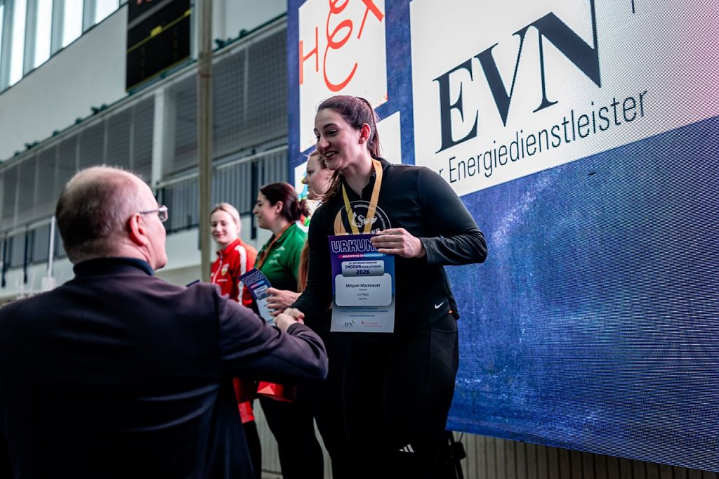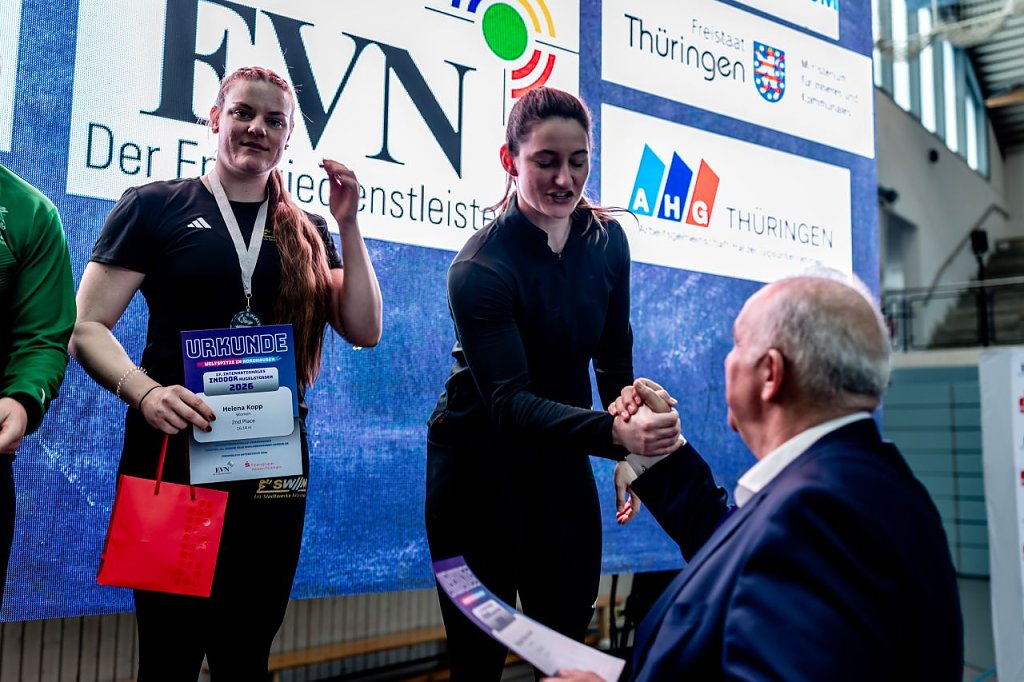 Das erste Mal über 16 Meter: Das gelang Emily Scherf (SC Neubrandenburg) in der U20-Konkurrenz. Gleich im ersten Versuch wuchtete sie ihr Arbeitsgerät auf die neue persönliche Bestmarke von 16,24 Metern. Mit dieser Leistung setzte sich die 19-Jährige an die Spitze der deutschen U20-Hallenbestenliste. Ich bin sehr, sehr zufrieden, dass ich die persönlicheBestleistung stoßen konnte, und dann auch noch im ersten Versuch. Gefreut habe ich mich, dass es über 16 Meter ging. Das war schon mein Ziel für den Wettkampf, resümierte Emily Scherf, die noch am vergangenen Wochenende mit 40 Grad Fieber im Bett gelegen hatte. Trotz der neuen Bestmarke sah sie noch viel Potenzial: Es war kein Stoß dabei, wo ich sage, den habe ich richtig getroffen.