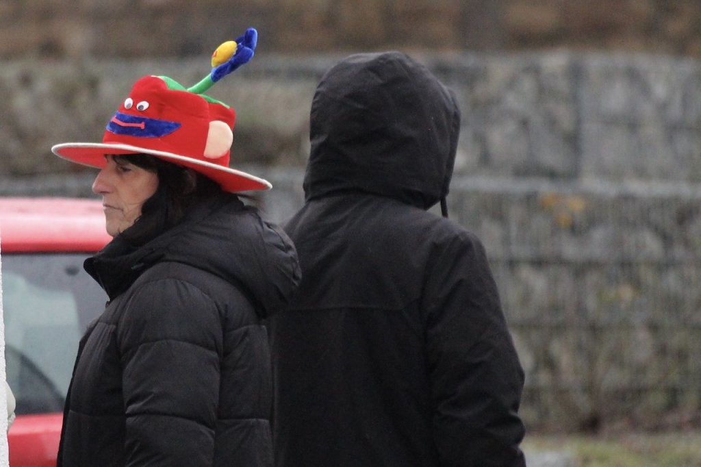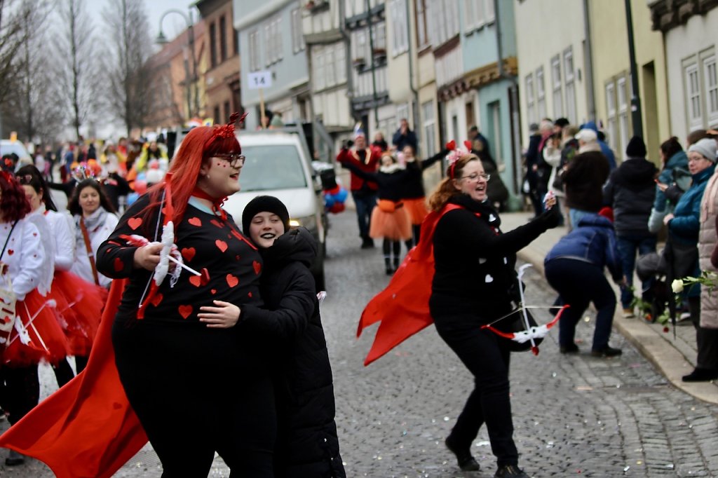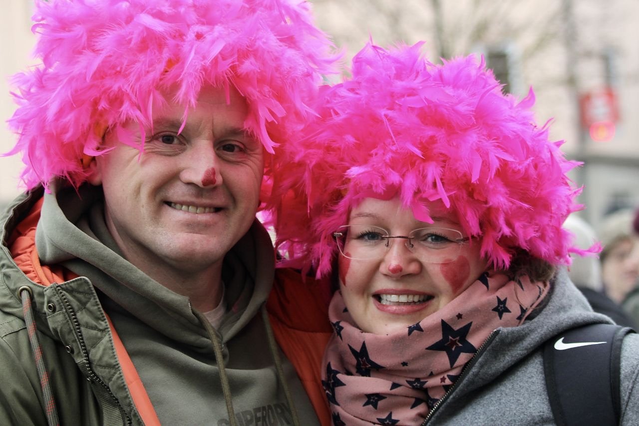 Ganz im Zeichen der Liebe, feiern die beiden Zuschauer den Karnevalsumzug in Bad Langensalza (Foto: Eva Maria Wiegand)