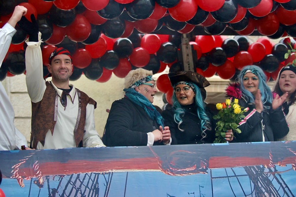 Der farbenfrohe Faschingstross wurde von unzähligen Zuschauern begrüßt, die schon vor Beginn mächtig mit Musik und guter Laune feierten.