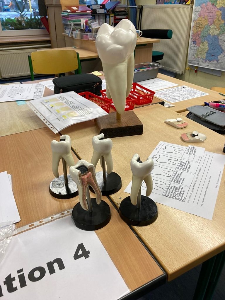 Wie heißt die richtige Zahnputztechnik und wie wird sie angewendet? Welche Lebensmittel sind gut für meine Zähne – und was sollte ich lieber nur selten essen? Gibt es Getränke, die meinen Zähnen schaden? Wie entsteht eigentlich ein Loch im Zahn? Wie sieht ein Zahn von innen aus und wo verstecken sich die Schulzähne im Kiefer? Diese und viele weitere Fragen wurden spielerisch erarbeitet und anschaulich beantwortet.