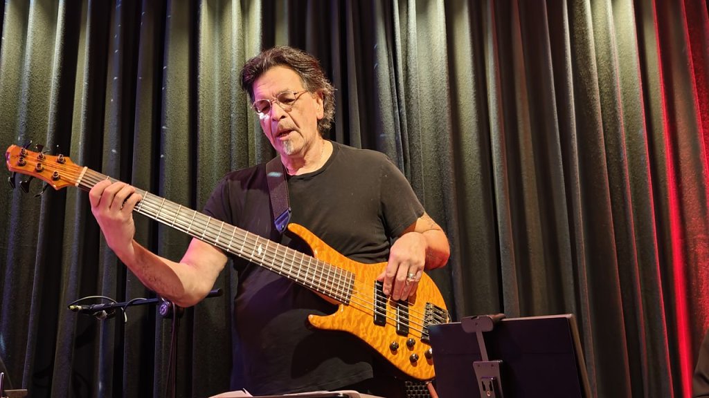 Gestern Abend war der Abstand zwischen die beiden Maxbass-Boxen lediglich knapp zwei Meter. Das Resultat war ähnlich, nur die Musik und die Musiker waren andere. Sie waren damals und gestern Handwerker - die ihre Kunst verstehen. Die elektrischen Impulse, die aus den beiden Boxen kamen, wurden auf der sechssaitigen Linkshändergitarre von Jimmy Hasslip erzeugt”, der zu den L.A. All-Stars um Drummer Chad Ackerman gehört. Ackerman ist nicht irgendwer in der Jazzszene, er spielte am längsten mit dem Meister”, mit Frank Zappa, zusammen. Ich will und kann hier nicht beschreiben, was da gestern zu hören und eben auch zu spüren war - vielleicht kann man es mit Weltmusik beschreiben. Neben Ackerman beseelten Alex Macharek an der Gitarre sowie Steve Hunt an den Keyboards den viel zu kleinen Raum der Jazz-Mangel in Nordhausen.