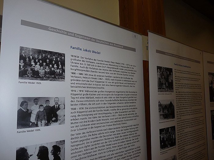 In der Sondershäuser Trinitatiskirche wurde um 17:00 Uhr die Ausstellung Volk auf dem Weg im zwanglosen Rahmen eröffnet. Auf 15 Schautafeln wird anschaulich Geschichte und Gegenwart der Deutschen aus Russland dargestellt. Russlanddeutsche, die an das Schicksal der Deportation im Stalinistischen Russland erinnern, werden zu Wort kommen.
