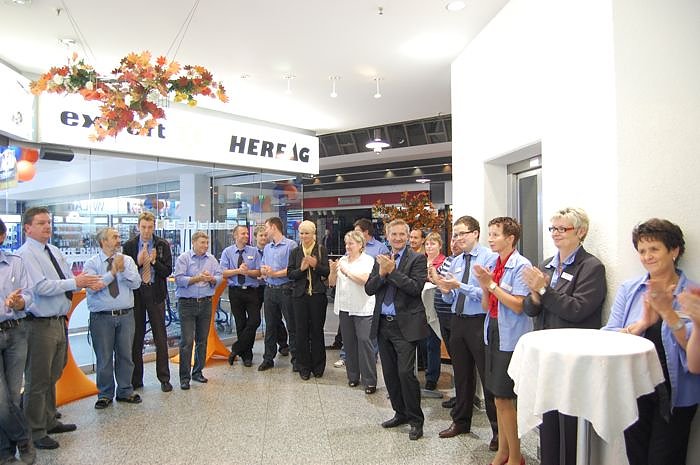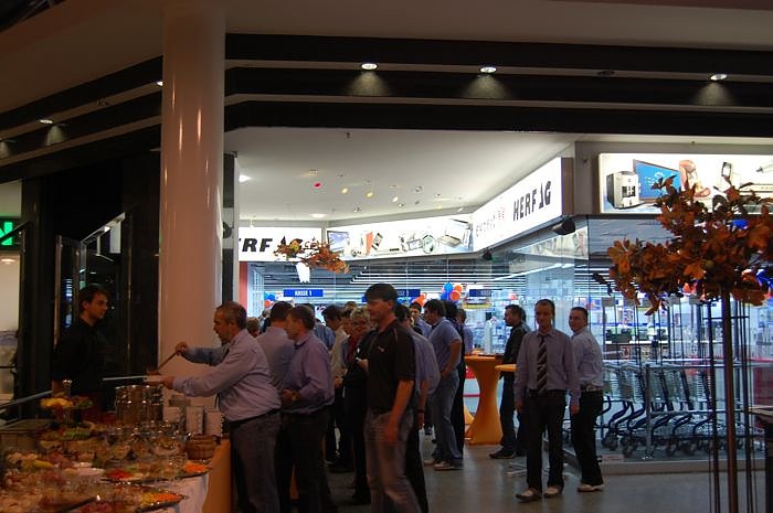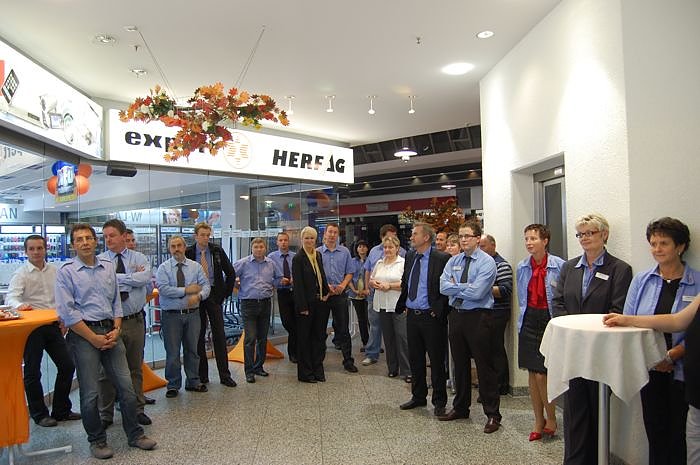 nnz-City Scout: Bedankt Eröffnungsfeier für den neuen Markt. Herfag sagte Danke an seine Mitarbeiter für den erfolgreichen Eröffnungstag. Und natürlich auch für die Mitarbeit beim Umbau.