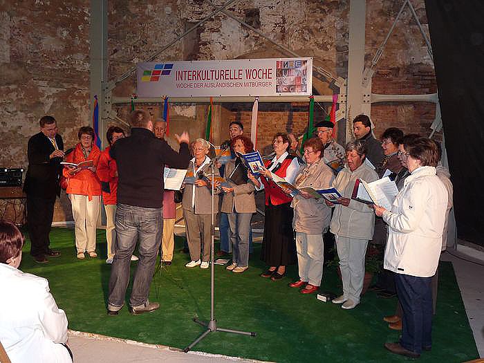 Ab 14:00 Uhr begann das Chorfestival der Volksmusik. Den Auftakt machet der Chor der Aussiedlerinitiative KONTAKT, Deutschen, die früher in Russland, Kasachstan oder Armenien gelebt hatten. Danach traten noch sieben weitere Chöre (Albert-Fischer-Chor; Bebraer Singvögel, , Frauenchor Berka, Ökumenischer Chor Sondershausen, Rjabinuschka aus Mühlhausen, Sondershäuser Madrigalisten, Stimme der Heimat-Chor des Bundes der Vertriebenen) auf. Moderiert und unterhaltsam ergänzt wurde die Vorstellung von Jakob Fischer aus Stuttgart.