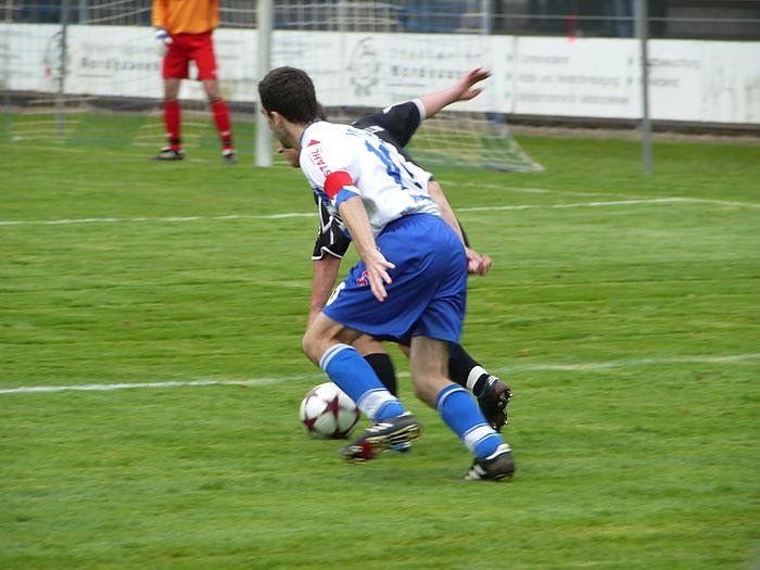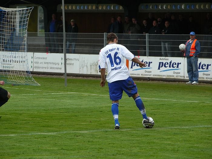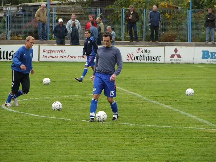 Gefährlich wurde es noch einmal kurz vor der Halbzeitpause. Daniel Wiegleb hält Mathias Seidel fest, dessen scharfen Freistoß konnte Lars Greschke abwehren. Auch zwei weitere Freistoßversuche waren nicht von Erfolg gekrönt. Mit der Nordhäuser Führung ging es in die Kabinen.