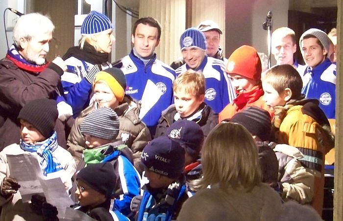 Zunächst sangen die Jüngsten "Rudolph the Red-Nosed Reindeer". Anschließend interviewte Kerstin Weiß den Nachwuchsleiter Detelef Ludwigs. Mit "Oh Tannenbaum" kamen auch die kräftigen Stimmen der Männer hinzu.